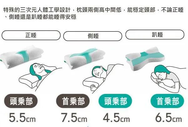 利用人體工學原理做出精確的枕頭高度,在躺下時能保持呼吸道暢通
