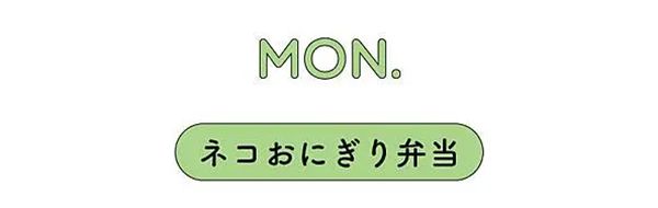 星期一《貓咪飯糰》捏出貓咪的飯糰 ♪ ,搭配麵包和孩子們都愛的小熱狗。