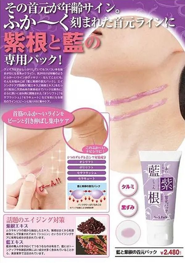 這款藍紫根頸膜主要針對頸部較深紋路,有效淡化,提拉緊緻!