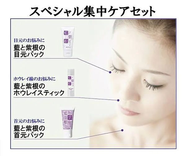 針對年齡引起的皮膚乾燥、鬆弛所設計的問題,集中護理。 含有藍紫根成分,保濕潤澤、不油膩。
