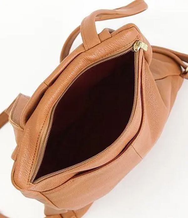 包包的拉鍊開口位置不是在正上方,反而被設計在偏後背的上面位置