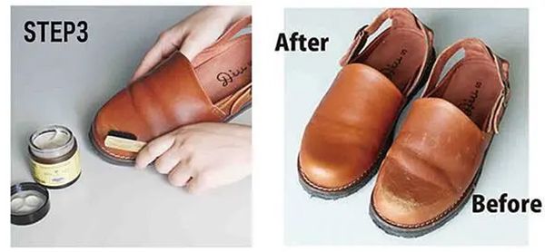 步驟3-在布或刷子上取少量原始的皮革油,將其稀薄地塗上鞋面