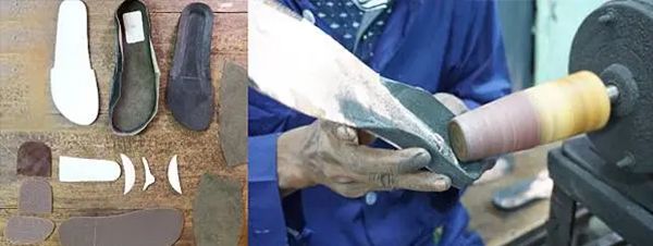 鞋身採用真牛皮革,職人將皮革多餘水分排除後
