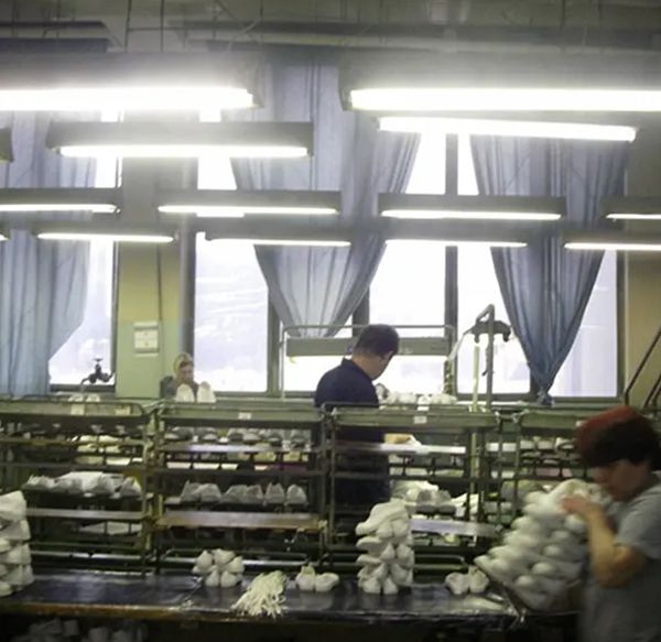 在當地工廠以最傳統的製作方式和舊機器完成縫製