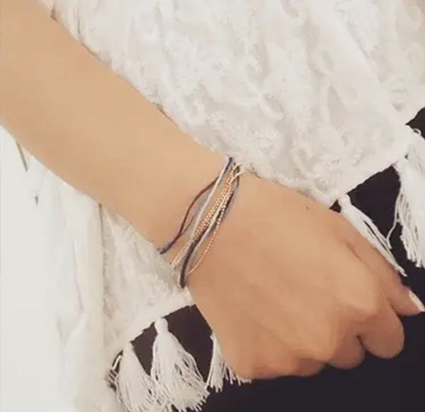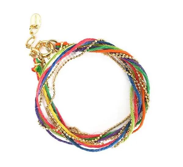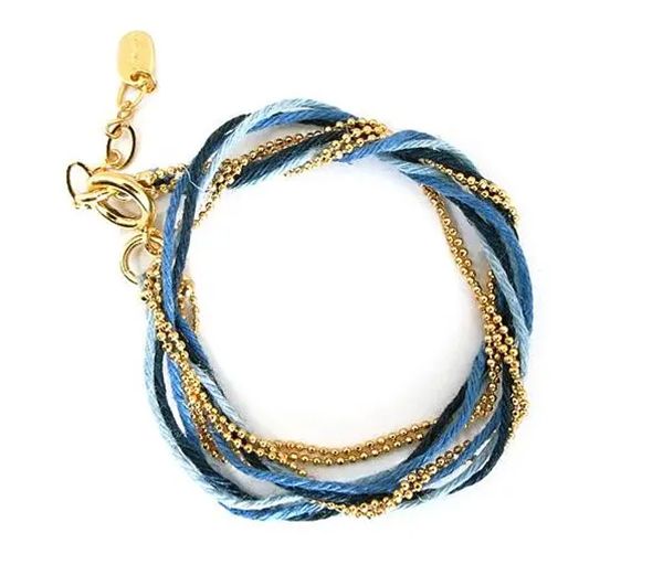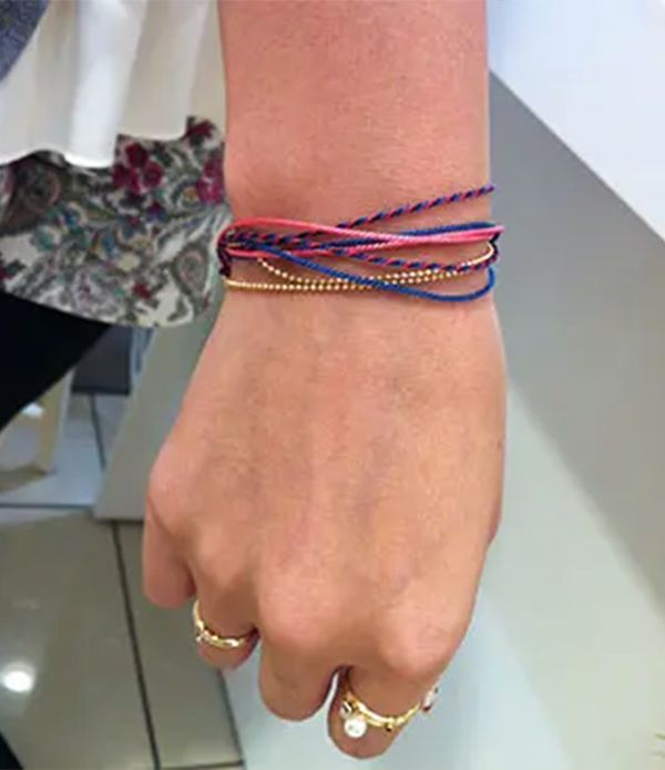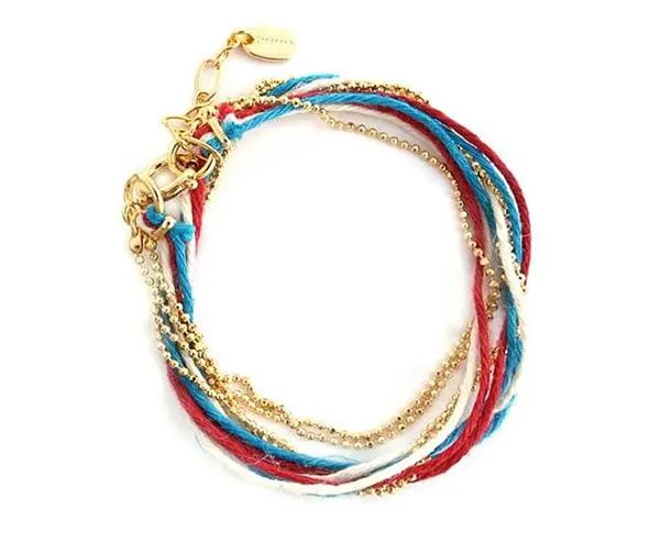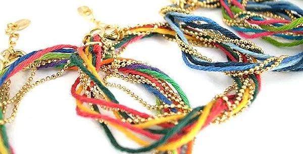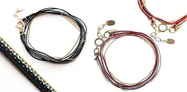 手鍊上的金色鍊子都是細膩的18K包金,透過3層不同顏色麻線和2個金色的小球狀