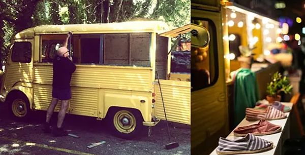 以一台復古的黃色箱型車改裝而成, 相當可愛。