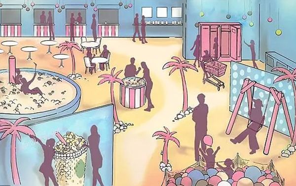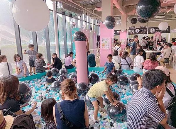 珍珠字樣拍照打卡牆、珍珠球池、珍奶氣球、珍奶背景的粉色鞦韆