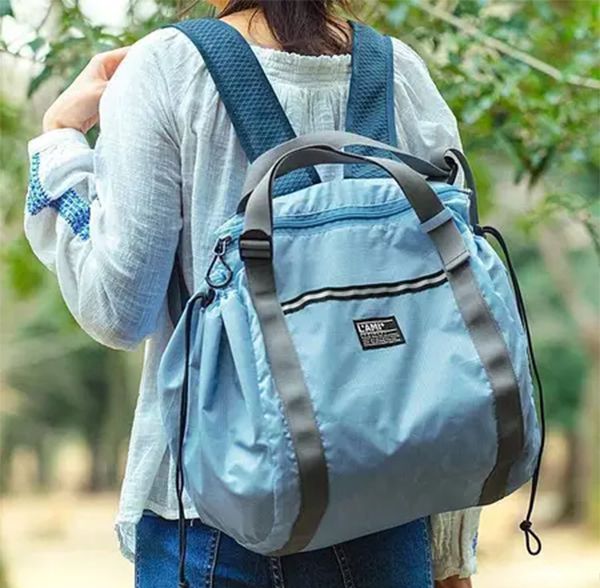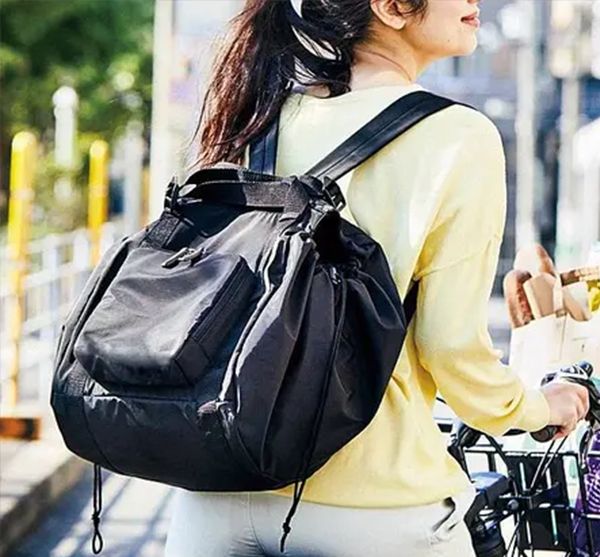 購物完後,直接拉緊兩邊束口就可以收緊包包