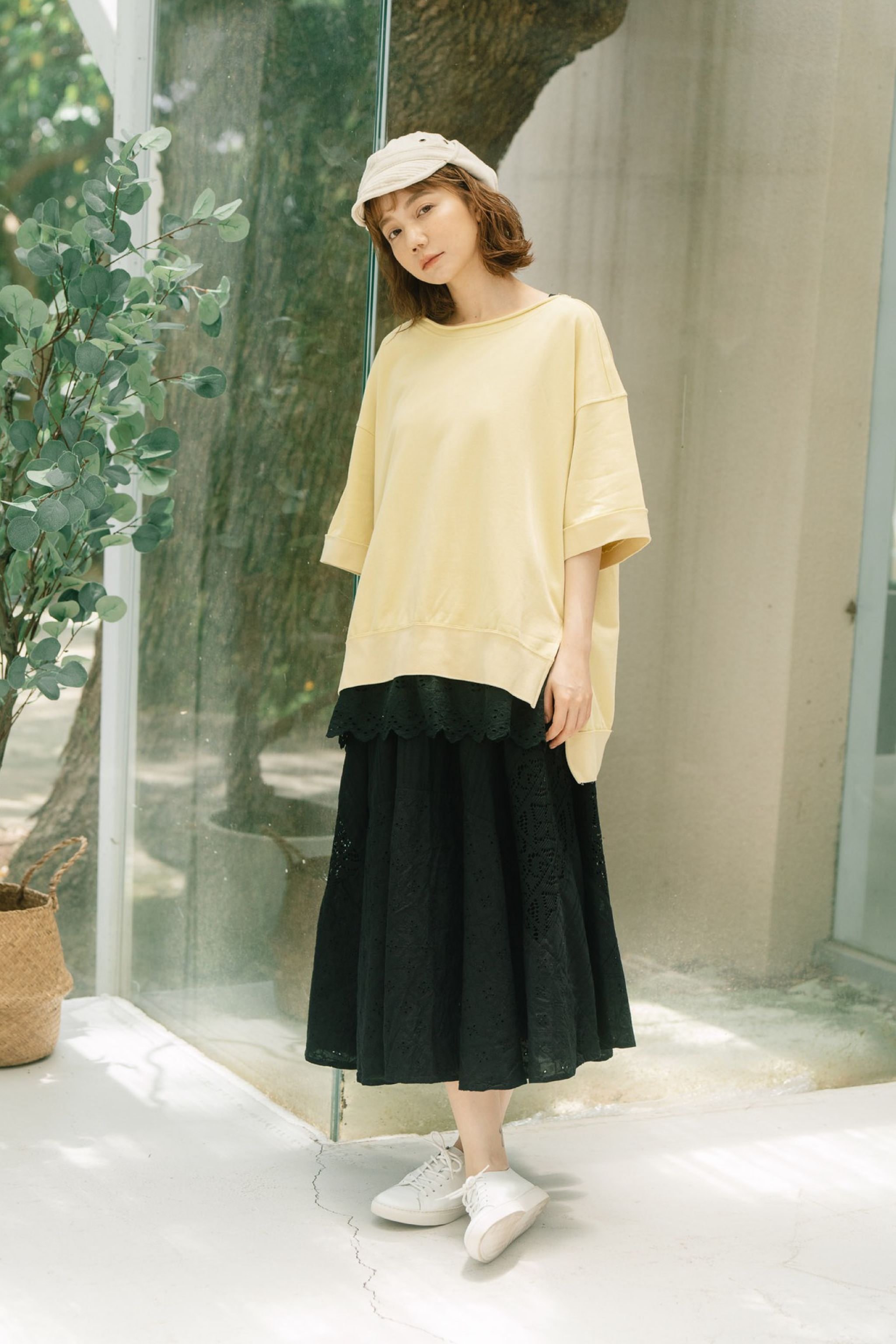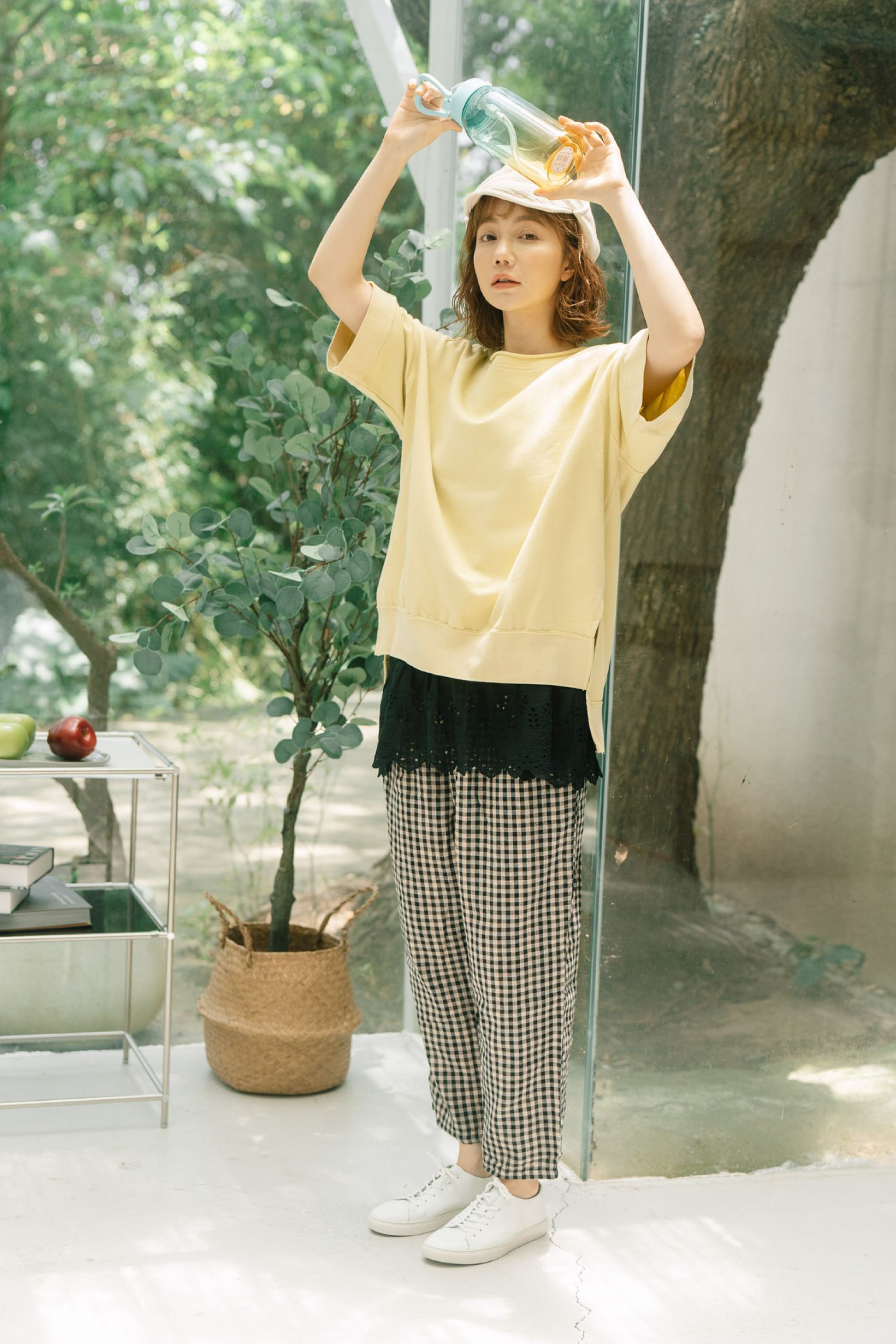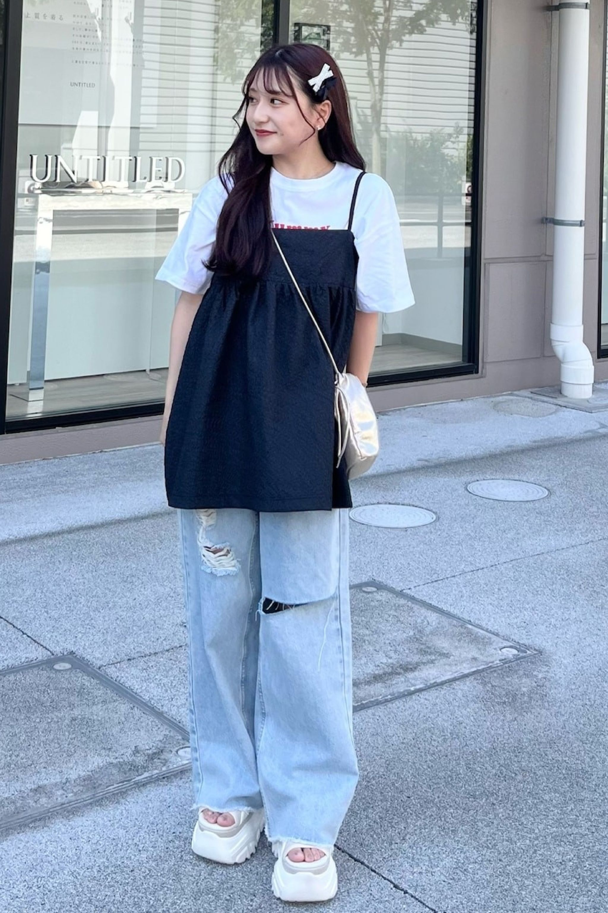 多層次混搭方式,向來是日系穿搭要點之一,運用細肩帶背心加上傘襬上衣、TEE,層層疊搭簡單搭出時尚感,下半身選擇褲裝為主,讓比例擁有顯高視覺,傘襬剪裁同時製造修飾度,遮肚遮臀單品實在太推薦。