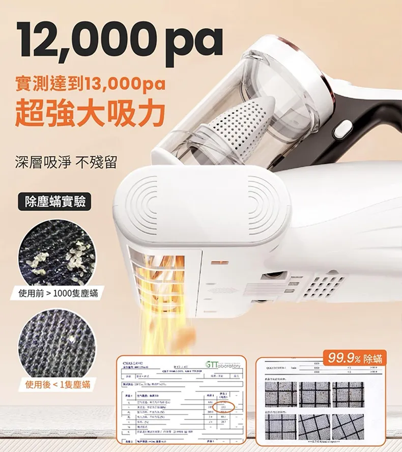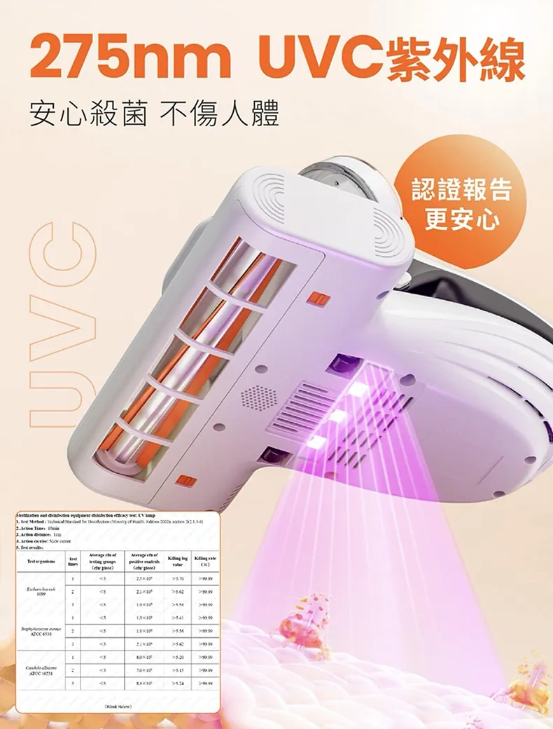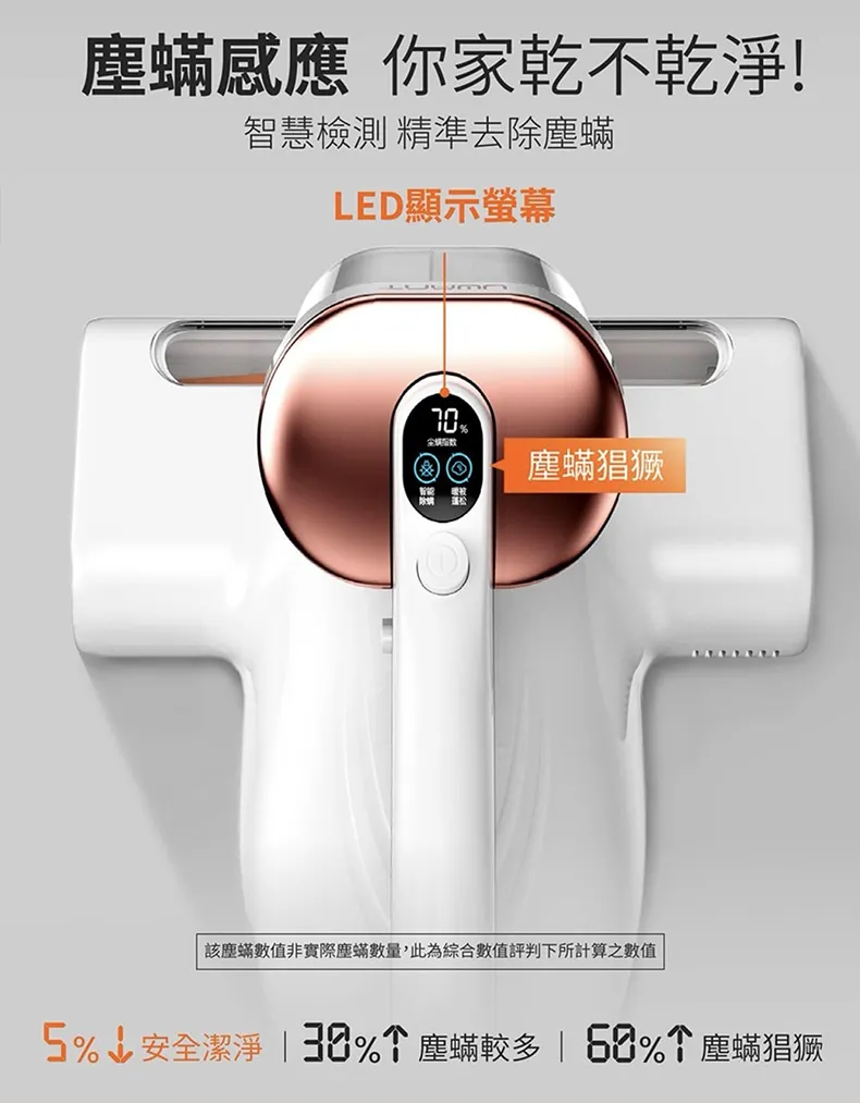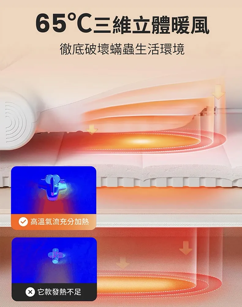 這款高效除蟎吸塵器,結合超強吸力、超聲波震動、紫外線殺菌與 65°C 三維立體熱風,徹底消滅藏匿於