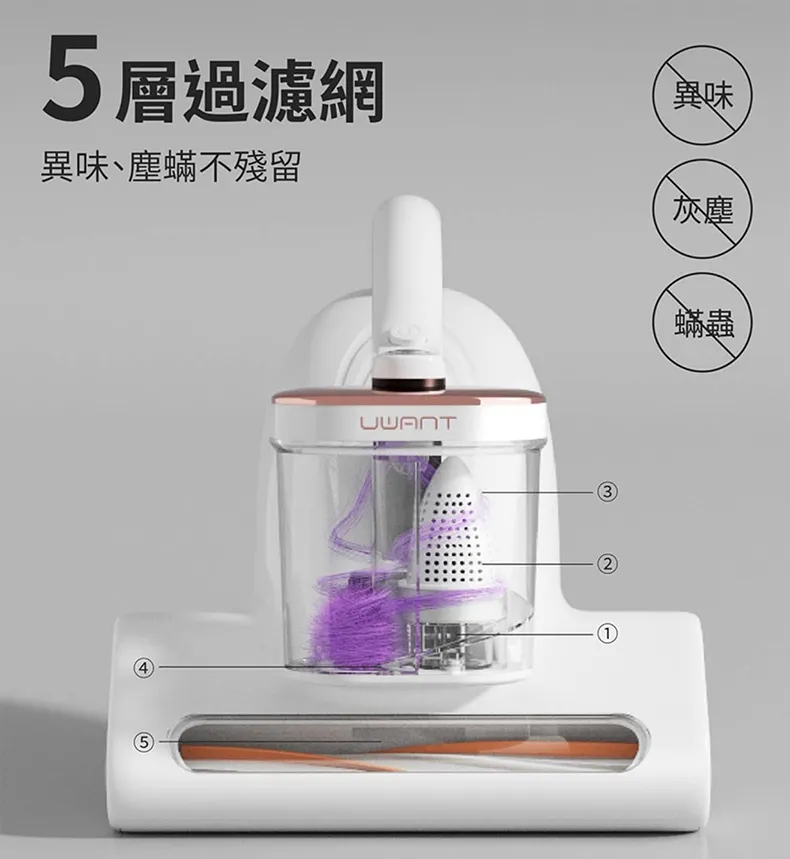 - 五層高效過濾網,針對不同顆粒大小進行過濾,杜絕塵蟎與灰塵殘留。
