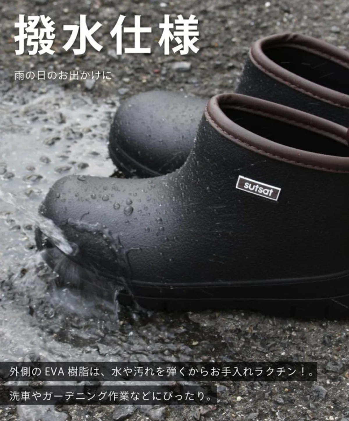 平口靴型:穿脫更加方便,鞋口的滾邊設計有效減少腳跟摩擦的不適,讓你在雨天也能輕鬆行走。