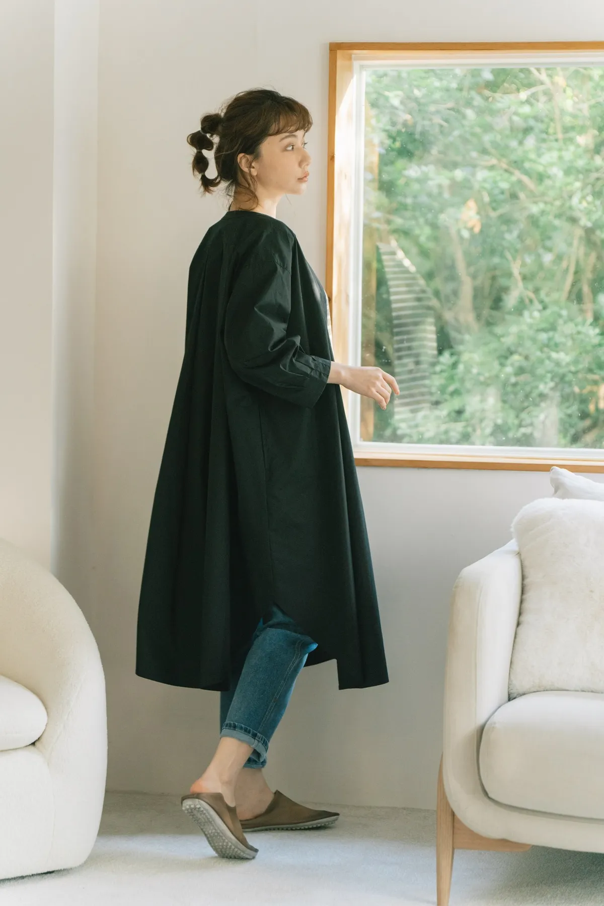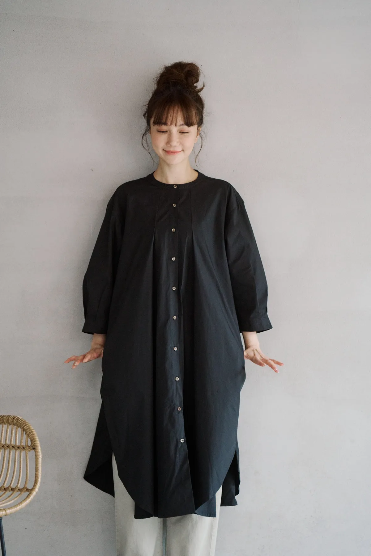 每天都會穿牛仔褲,但也是總不能一直穿著長T。那麼就要設計一款專門搭配牛仔褲用的襯衫洋裝!只需要穿著這款長洋裝搭配牛仔褲,超級完美黃金尺寸的衣長長度,會過長也不會過短!穿起來就是給人那麼清爽的俐落感!
