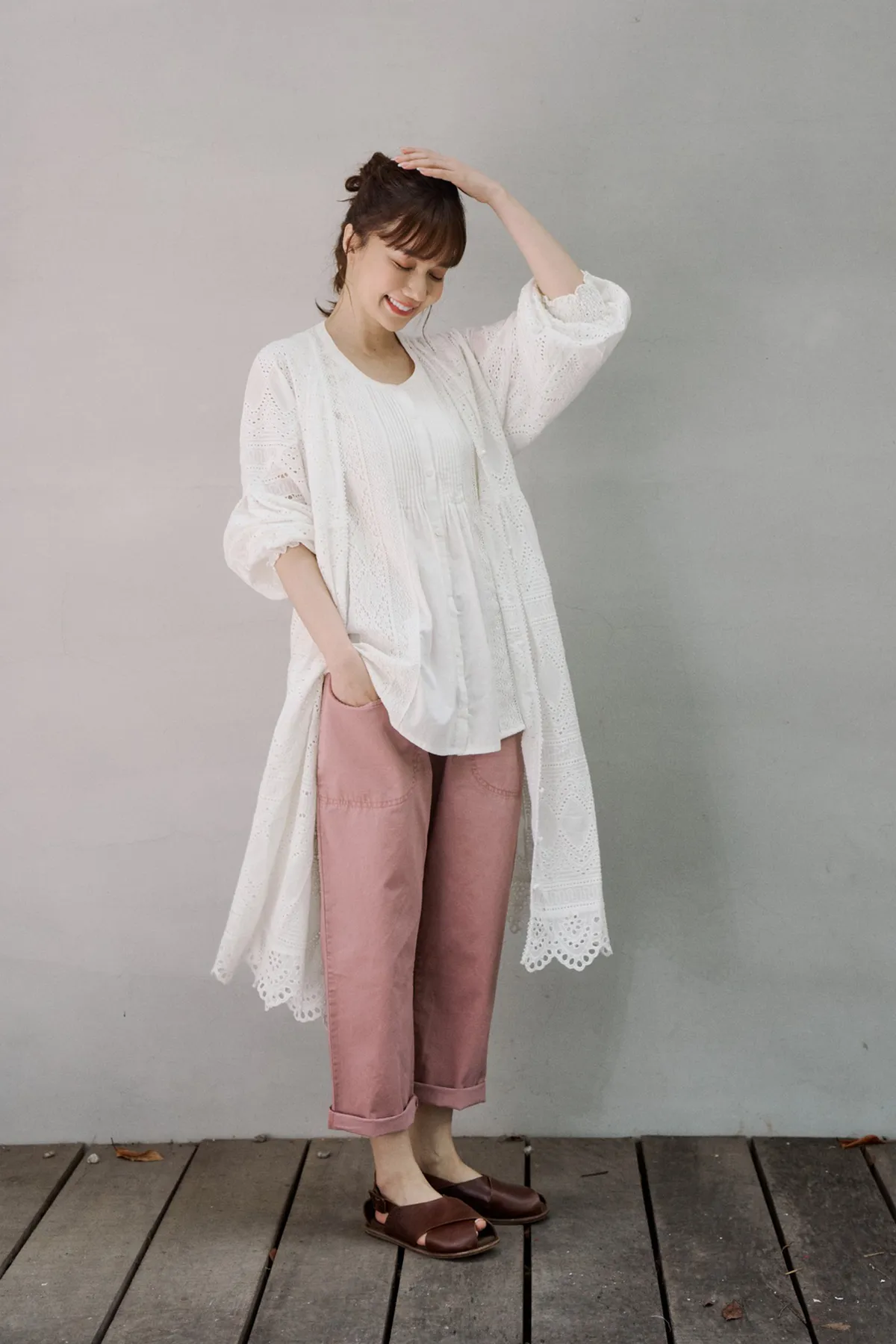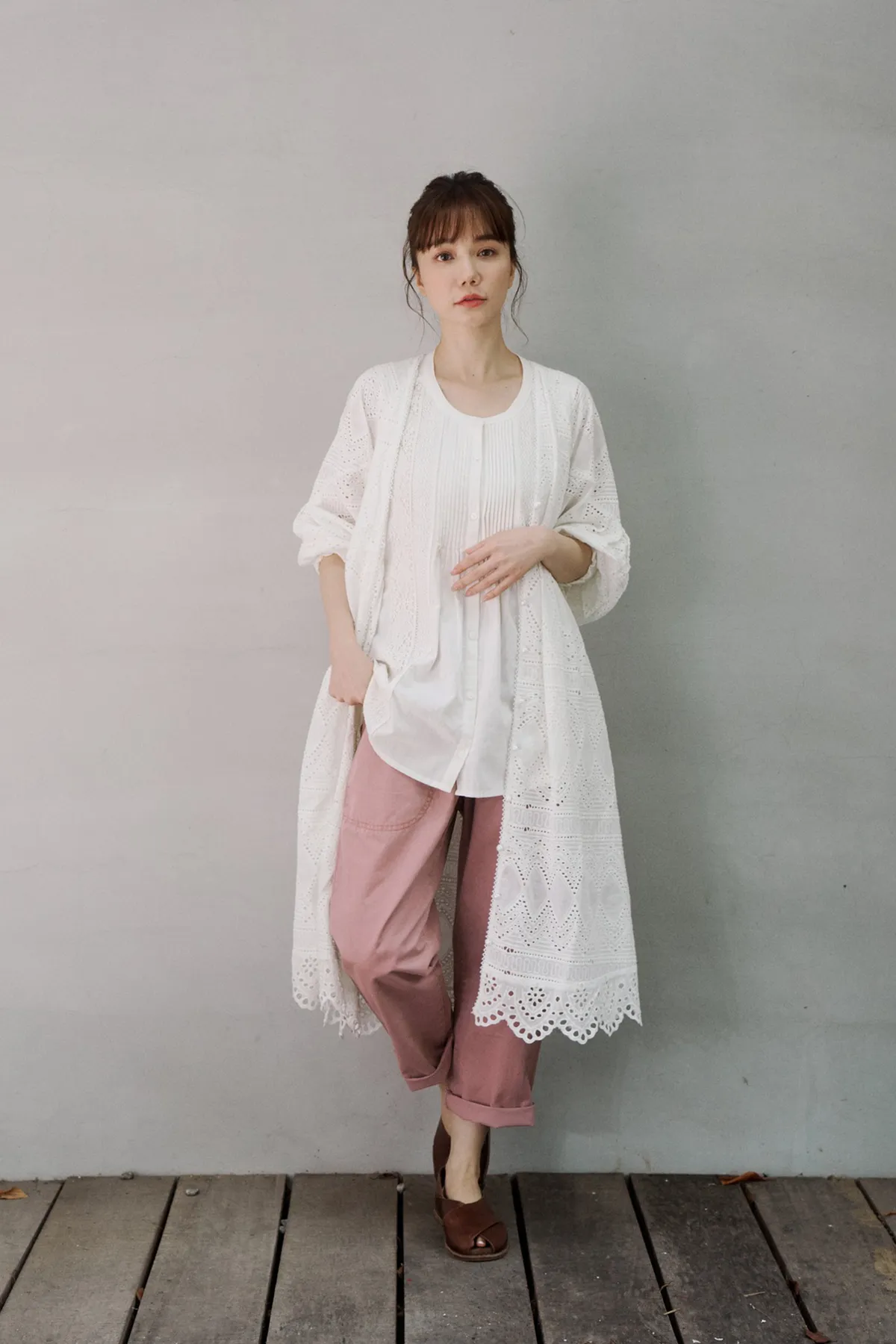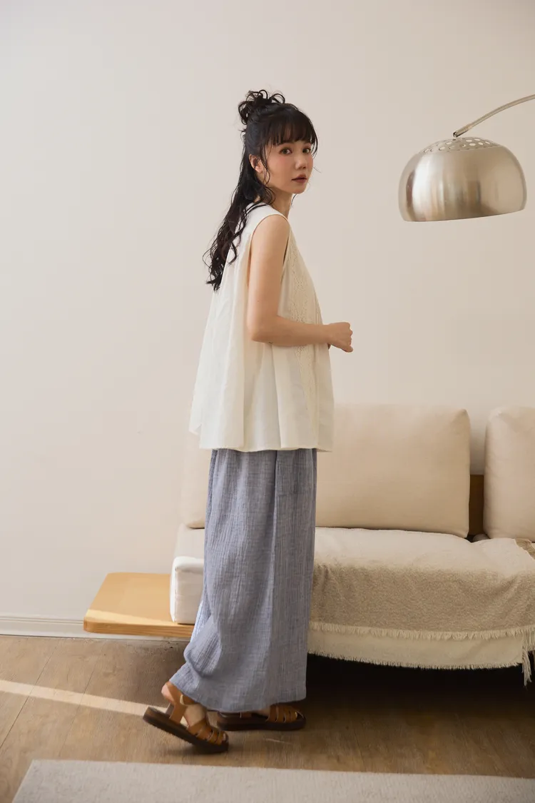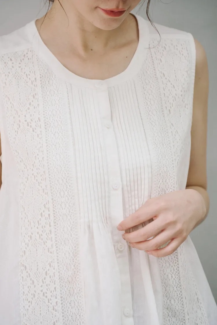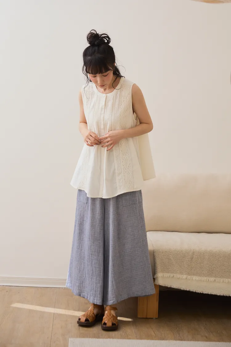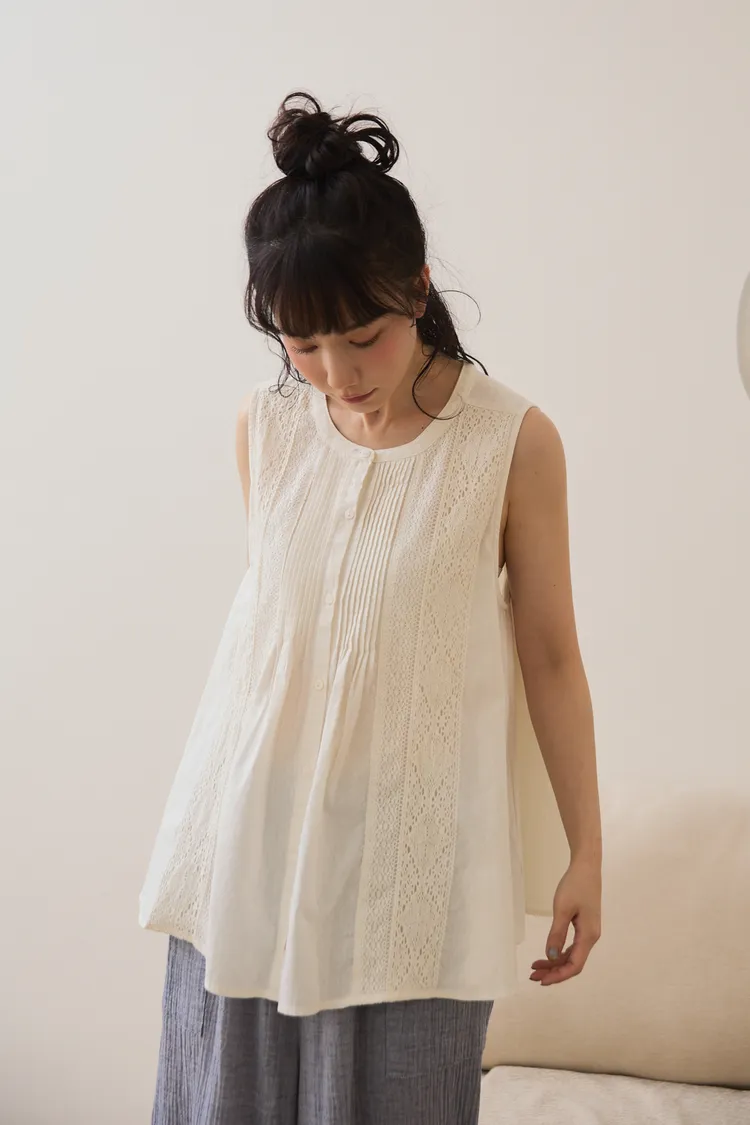 它也可以說這是一件專門拿來搭配外罩衫的蕾絲背心!因為有時候搭配罩衫會覺得內裡很無聊或者不太想要再穿有袖子的衣服,這件剛好可以搭配外罩衫來穿搭,且正面的同色調蕾絲也能增添低調的華麗感