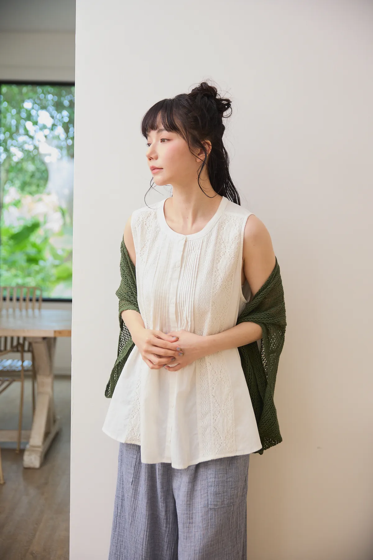 不要小看這件蕾絲衫,它是專門設計給害怕露出手臂但又想穿著無袖衫的人!當初我收到這件蕾絲衫穿上真的驚訝不己,因為看起來平平一件無袖衫,卻設計了多個細節讓視覺效果更顯瘦,連同把上身想要修飾的地方都蓋住了!