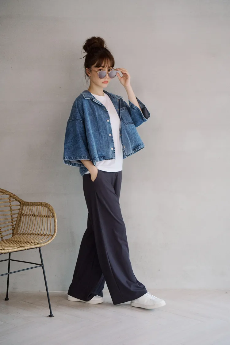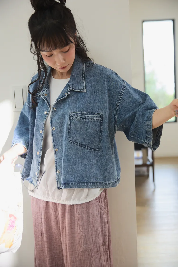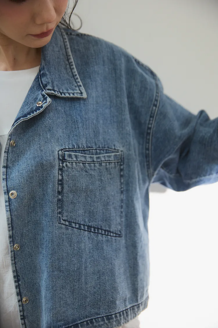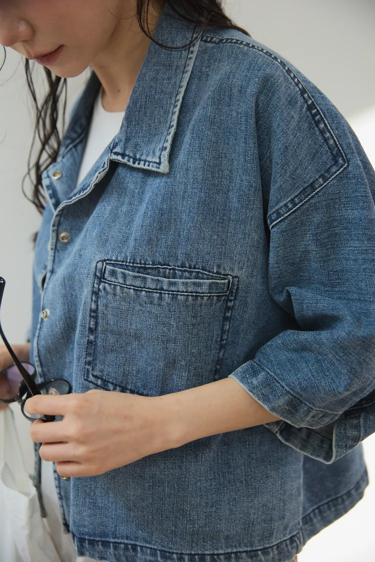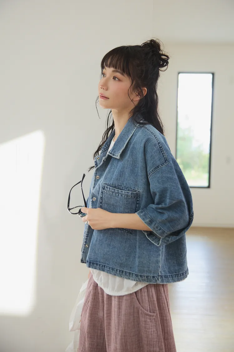 牛仔外套每年都有超高人氣 #沒有所謂流行或退流行只要買一件就可以一直穿它穿起來版型真的很好耶!#整件不厚旦也不會不挺的牛仔外套!牛仔外套是外套的定番單品,每年都擁有超高人氣,只要擁有一件,就可以翻玩各種不同的穿搭法。不過近幾年來牛仔外套也有許多種尺寸及顏色,依版型不同也會改變整體造型的感覺喔!#然而這件就是屬於隨性穿搭寬鬆感的style有點落肩有些短版寬身的感覺,穿起來很率性又好看,版型和一般牛仔外套比較不同,較大、寬鬆,,穿起來很隨性且百搭,給人一種很輕鬆休閒感的氛圍。衣長稍微比較短一點,穿起來不會過於拉遢,無論搭配褲子和裙子,寬褲都非常適合喔!
