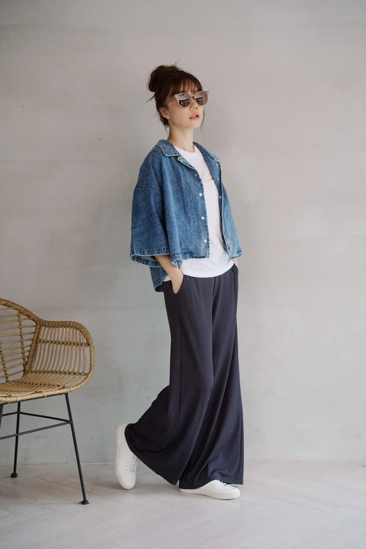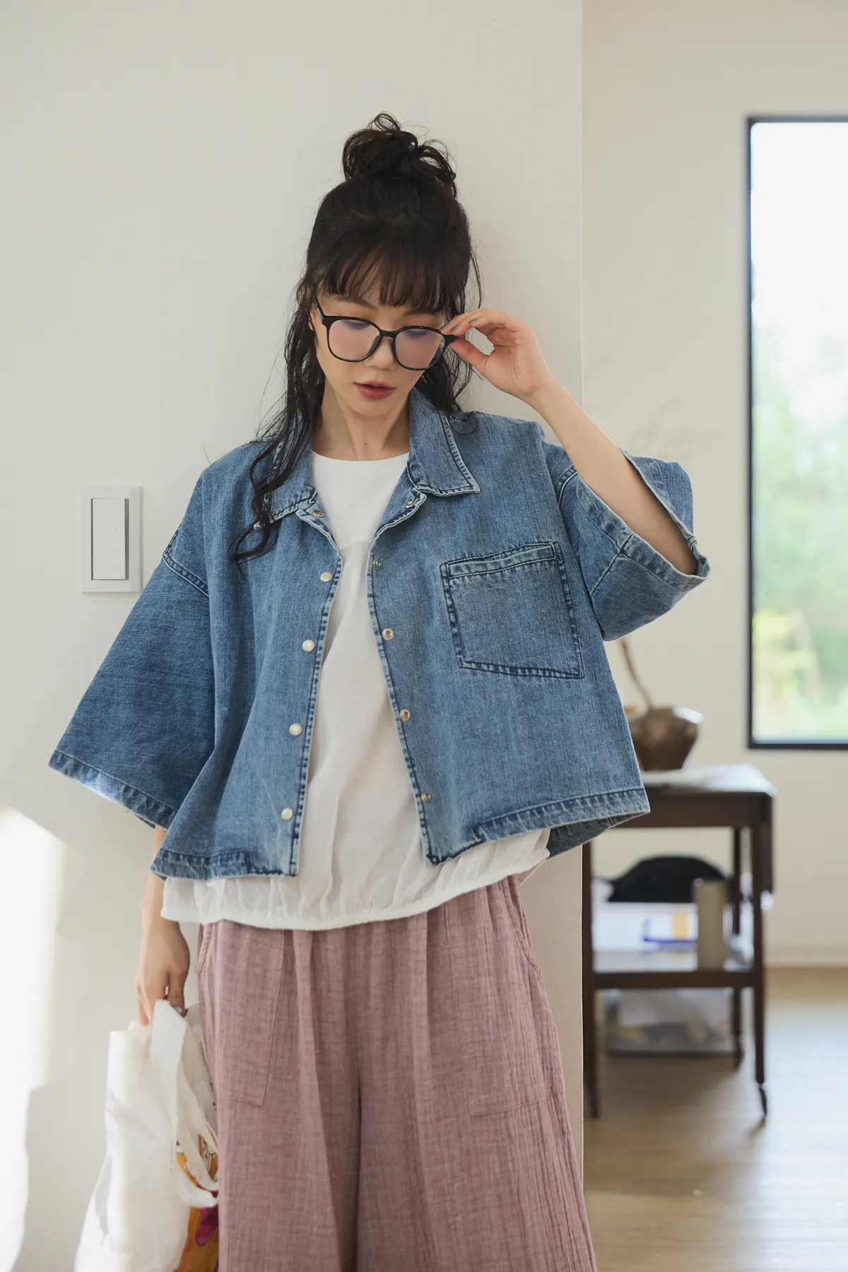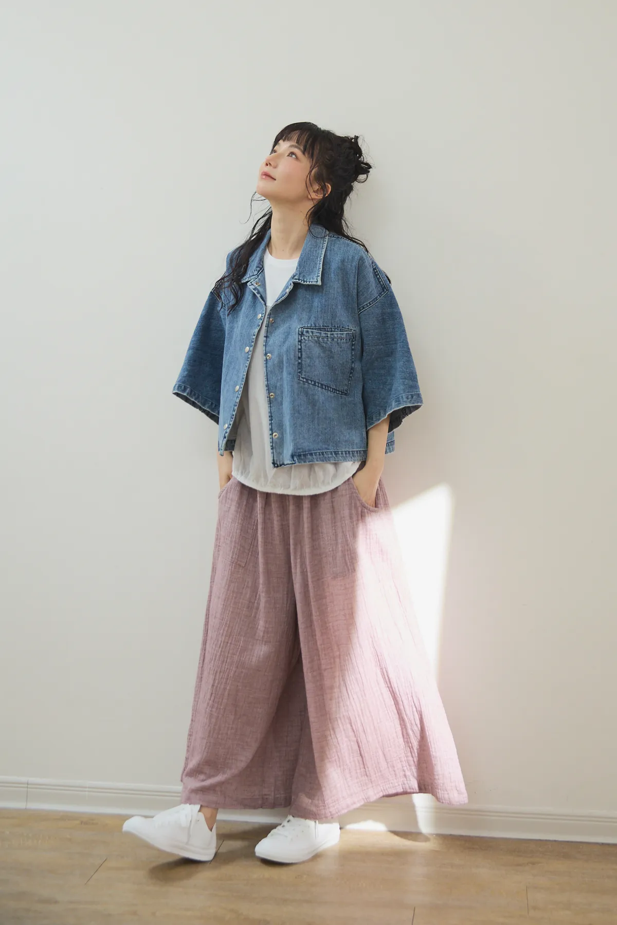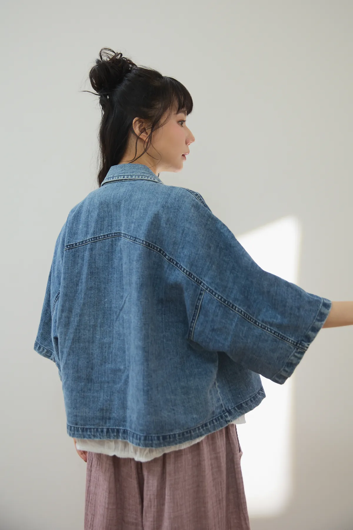 牛仔外套每年都有超高人氣 #沒有所謂流行或退流行只要買一件就可以一直穿它穿起來版型真的很好耶!#整件不厚旦也不會不挺的牛仔外套!牛仔外套是外套的定番單品,每年都擁有超高人氣,只要擁有一件,就可以翻玩各種不同的穿搭法。不過近幾年來牛仔外套也有許多種尺寸及顏色,依版型不同也會改變整體造型的感覺喔!#然而這件就是屬於隨性穿搭寬鬆感的style有點落肩有些短版寬身的感覺,穿起來很率性又好看,版型和一般牛仔外套比較不同,較大、寬鬆,,穿起來很隨性且百搭,給人一種很輕鬆休閒感的氛圍。衣長稍微比較短一點,穿起來不會過於拉遢,無論搭配褲子和裙子,寬褲都非常適合喔!