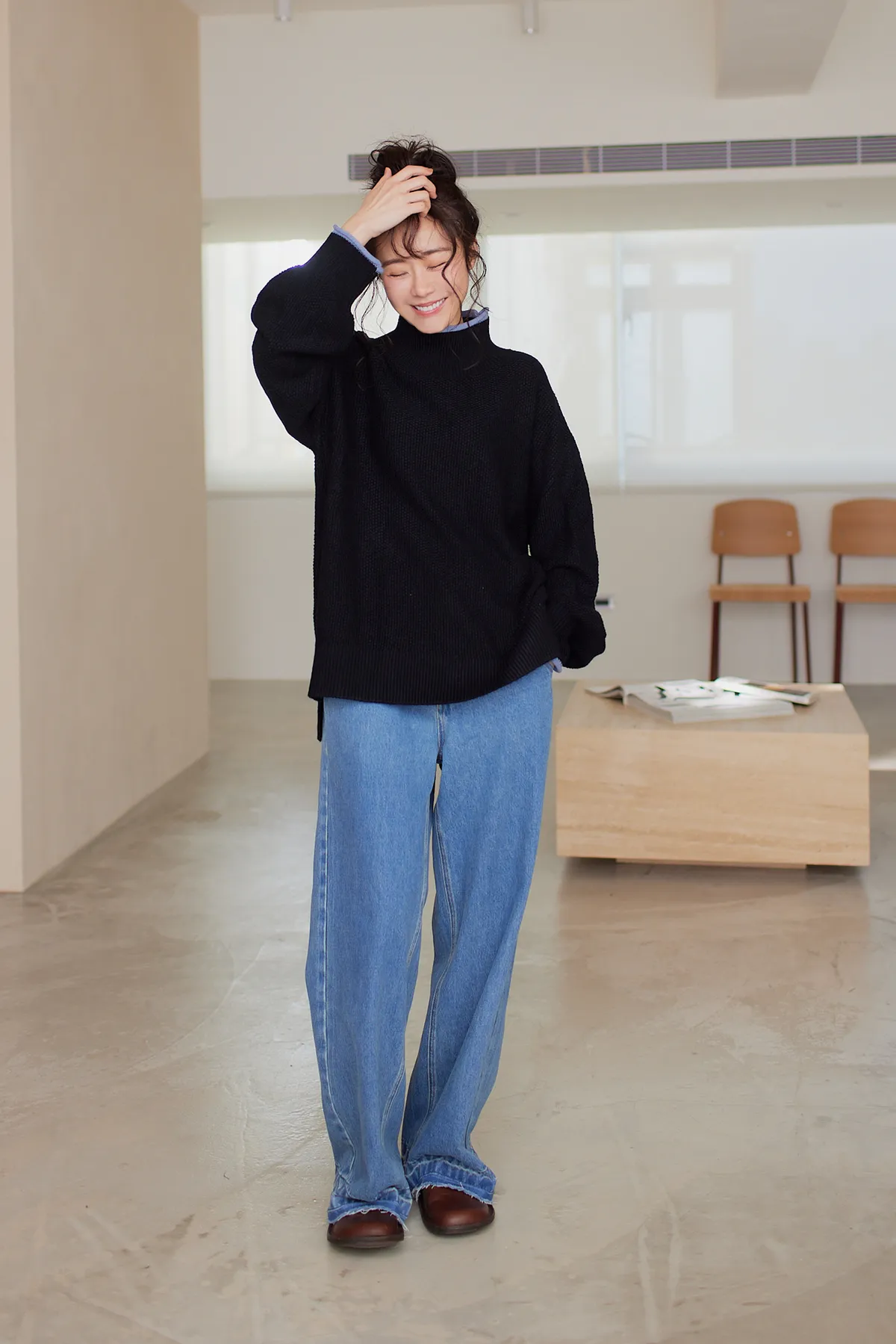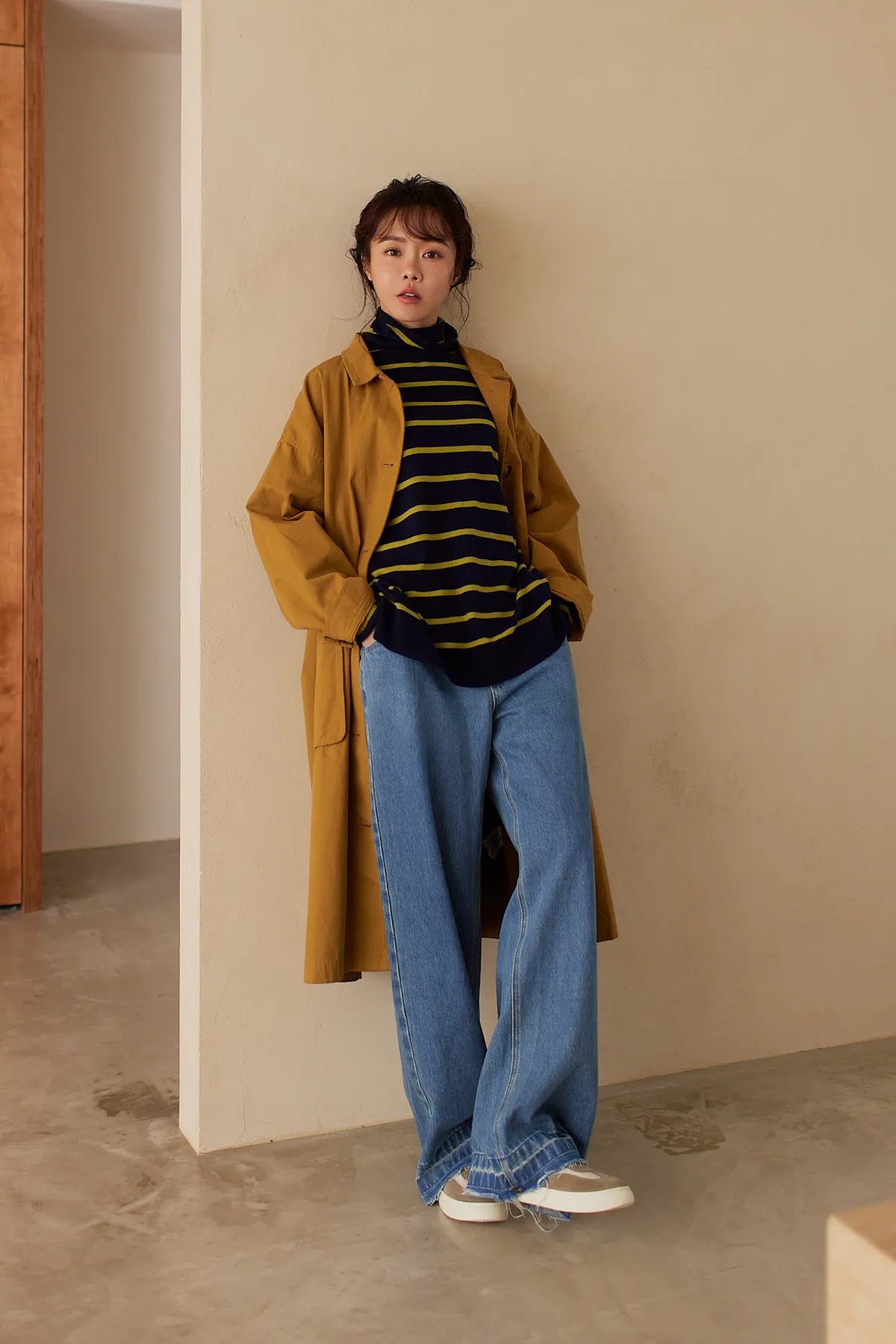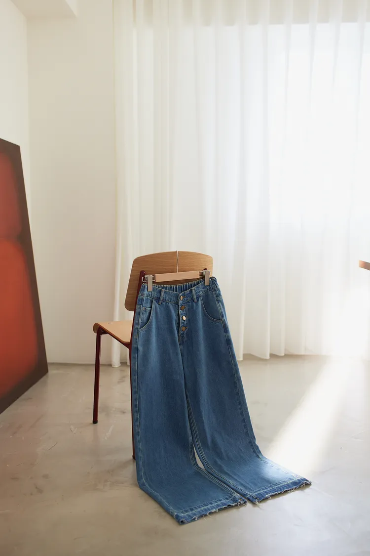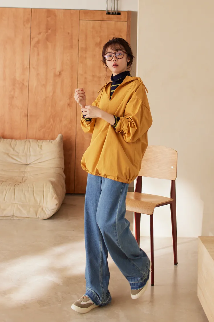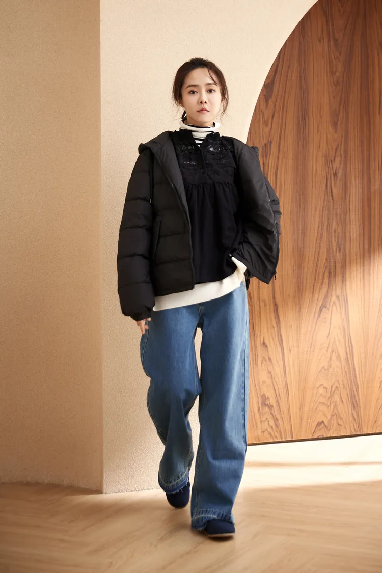 以牛仔襯衫夾克與直筒牛仔褲混搭,俐落褲款剪裁為臀部和大腿瞬間顯瘦,使整體看起來既不隨便還可呈現率性個性。腰圍友善,背後半圈鬆緊帶設計,牛仔水洗色是採用二手水洗工法,刻意營造出古董褲的色澤,非常好看!