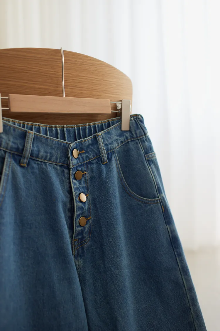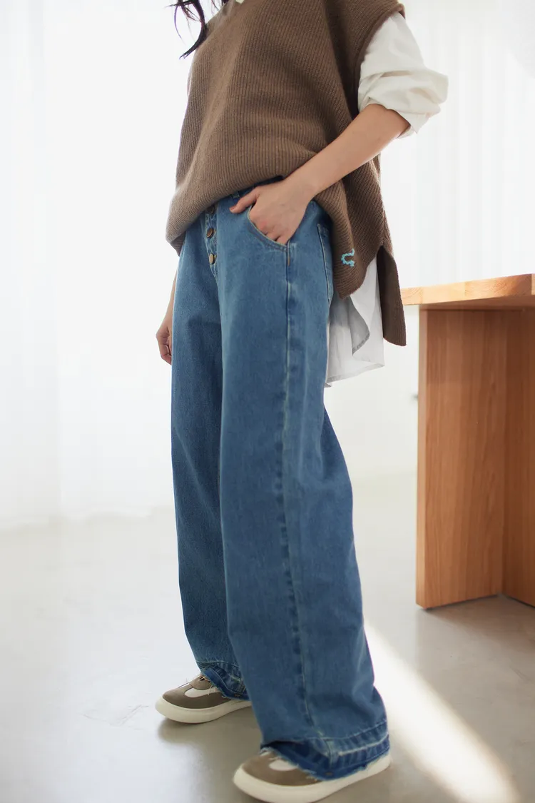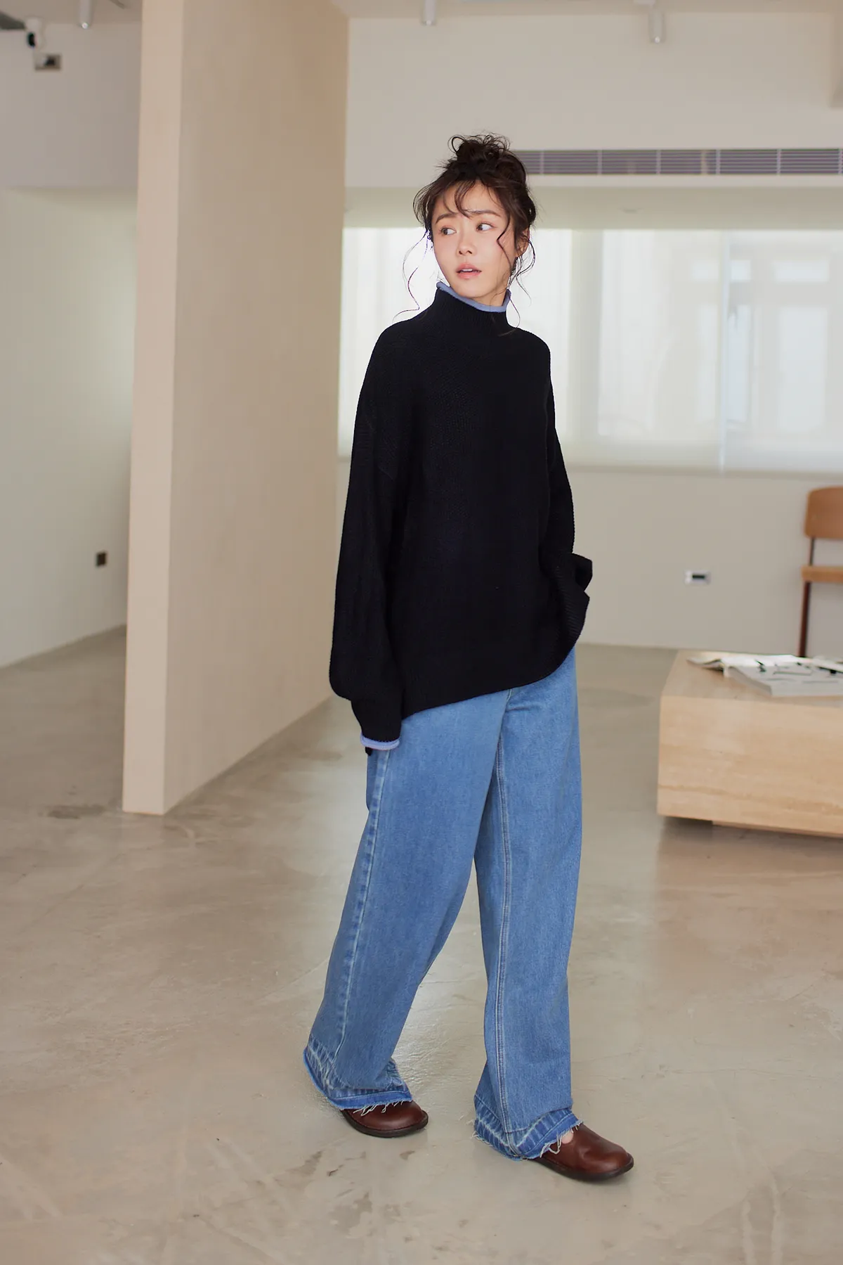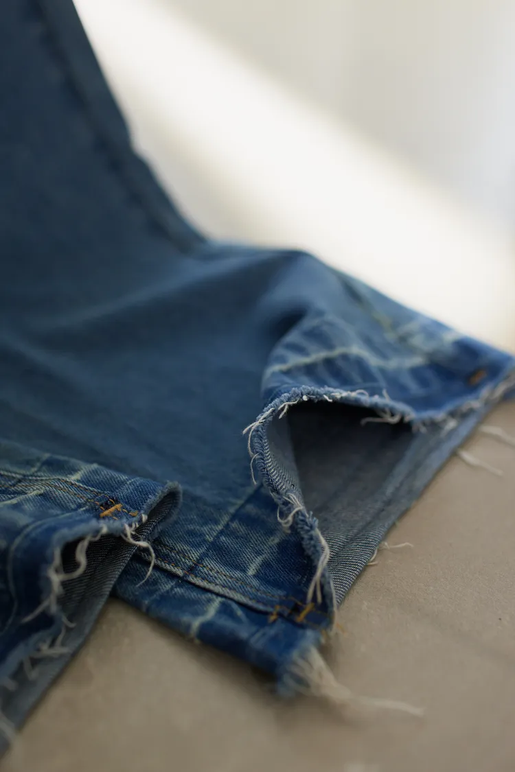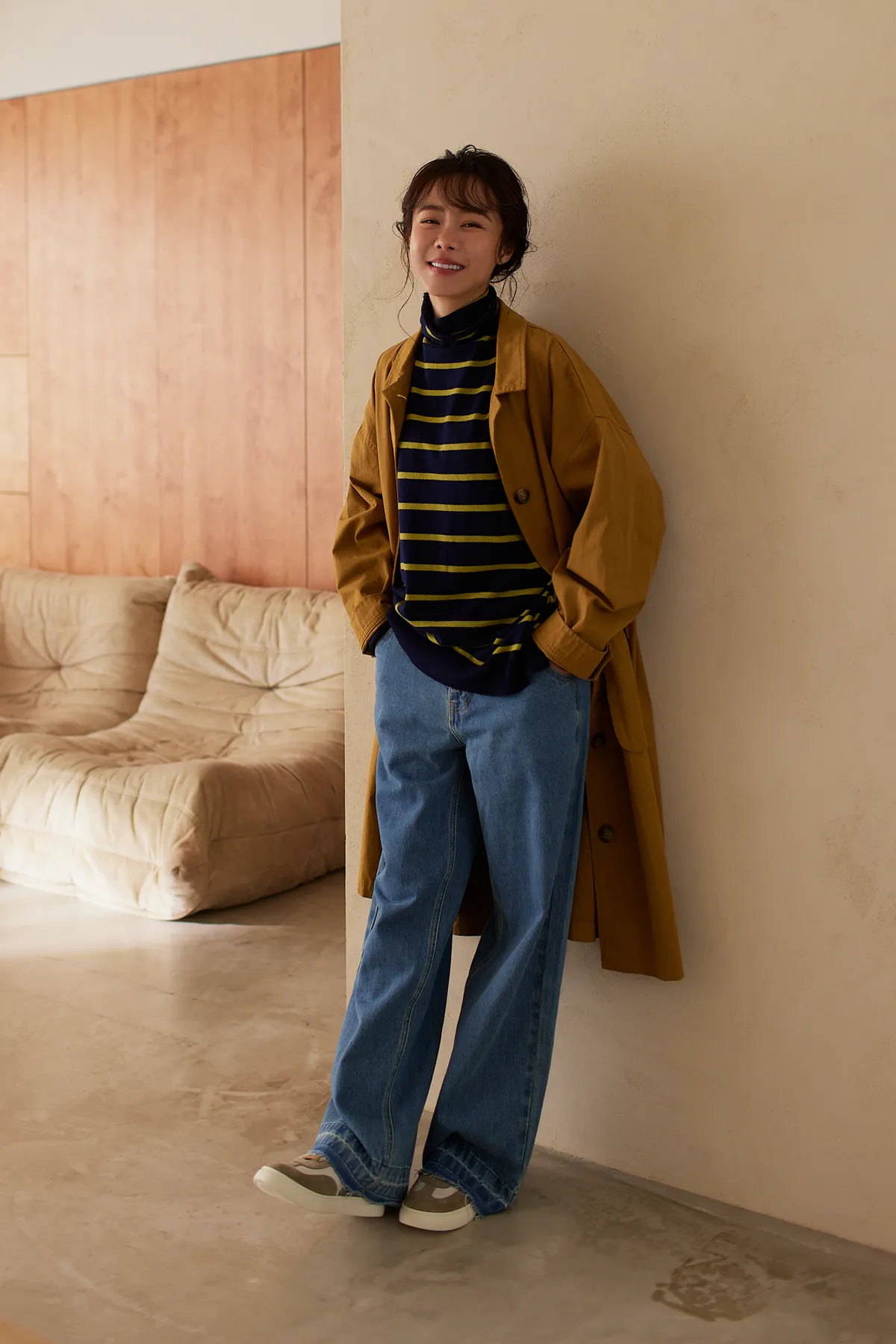 以牛仔襯衫夾克與直筒牛仔褲混搭,俐落褲款剪裁為臀部和大腿瞬間顯瘦,使整體看起來既不隨便還可呈現率性個性。腰圍友善,背後半圈鬆緊帶設計,牛仔水洗色是採用二手水洗工法,刻意營造出古董褲的色澤,非常好看!