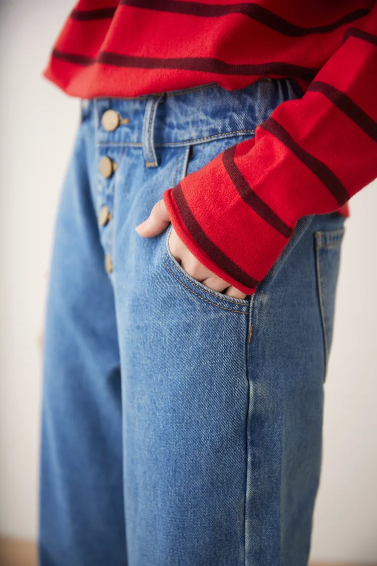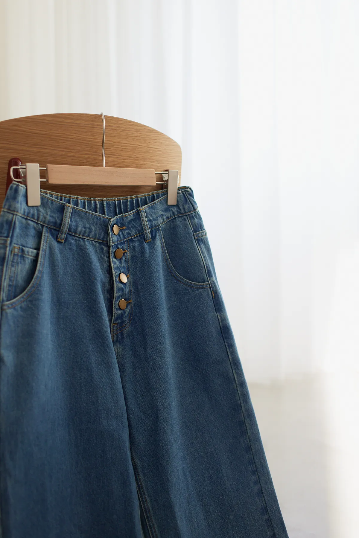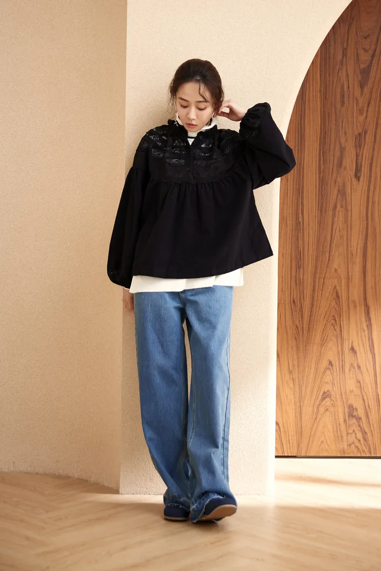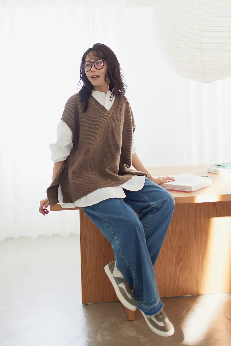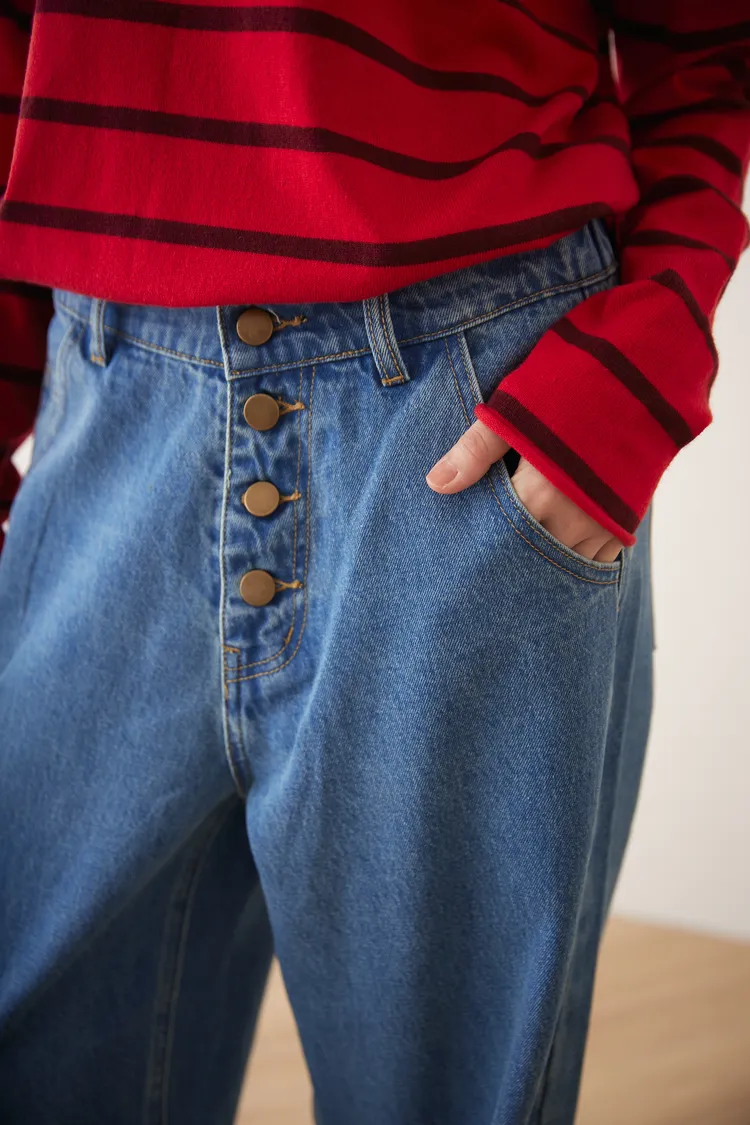 以牛仔襯衫夾克與直筒牛仔褲混搭,俐落褲款剪裁為臀部和大腿瞬間顯瘦,使整體看起來既不隨便還可呈現率性個性。腰圍友善,背後半圈鬆緊帶設計,牛仔水洗色是採用二手水洗工法,刻意營造出古董褲的色澤,非常好看!