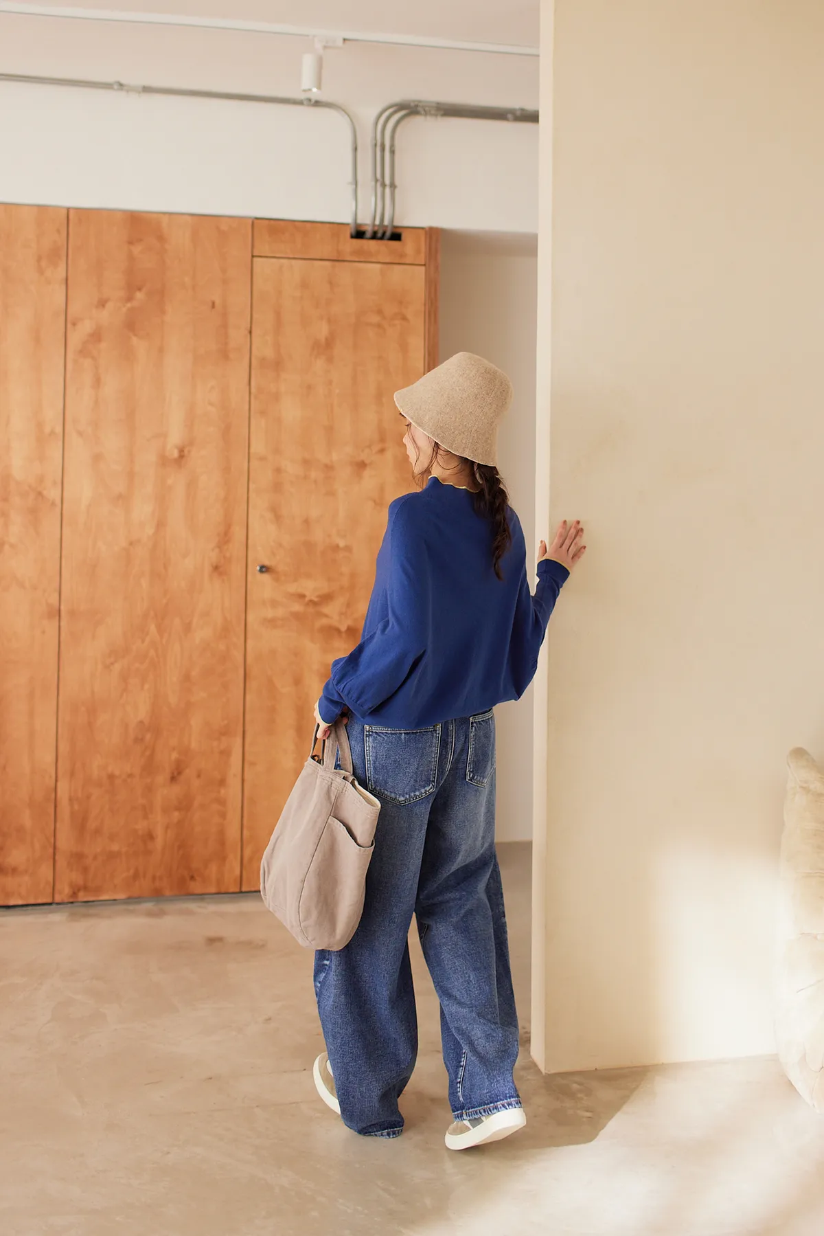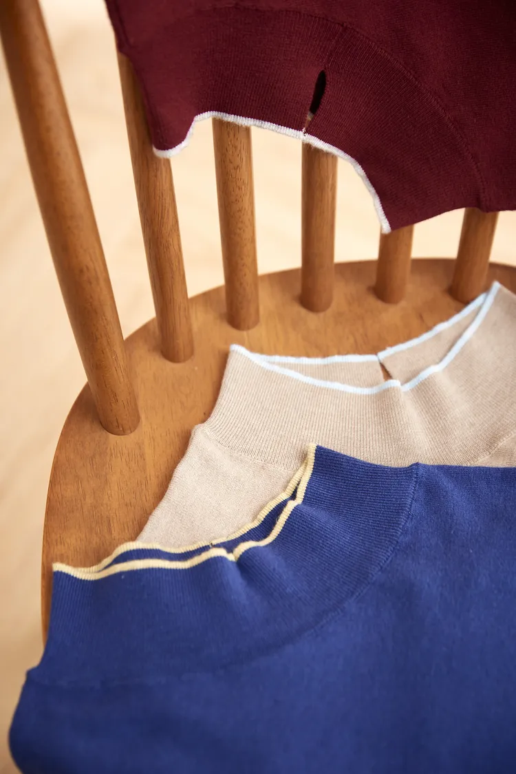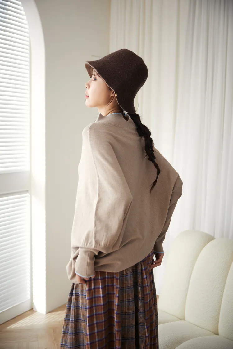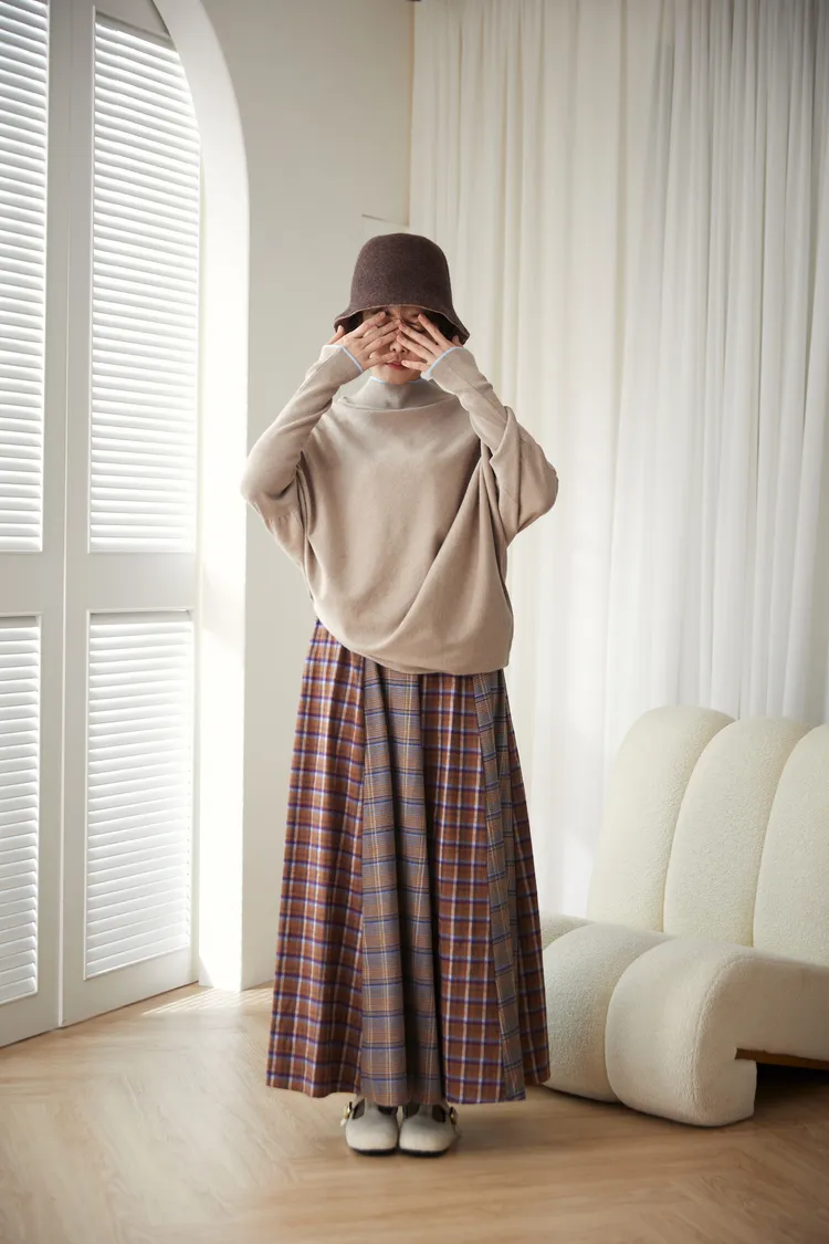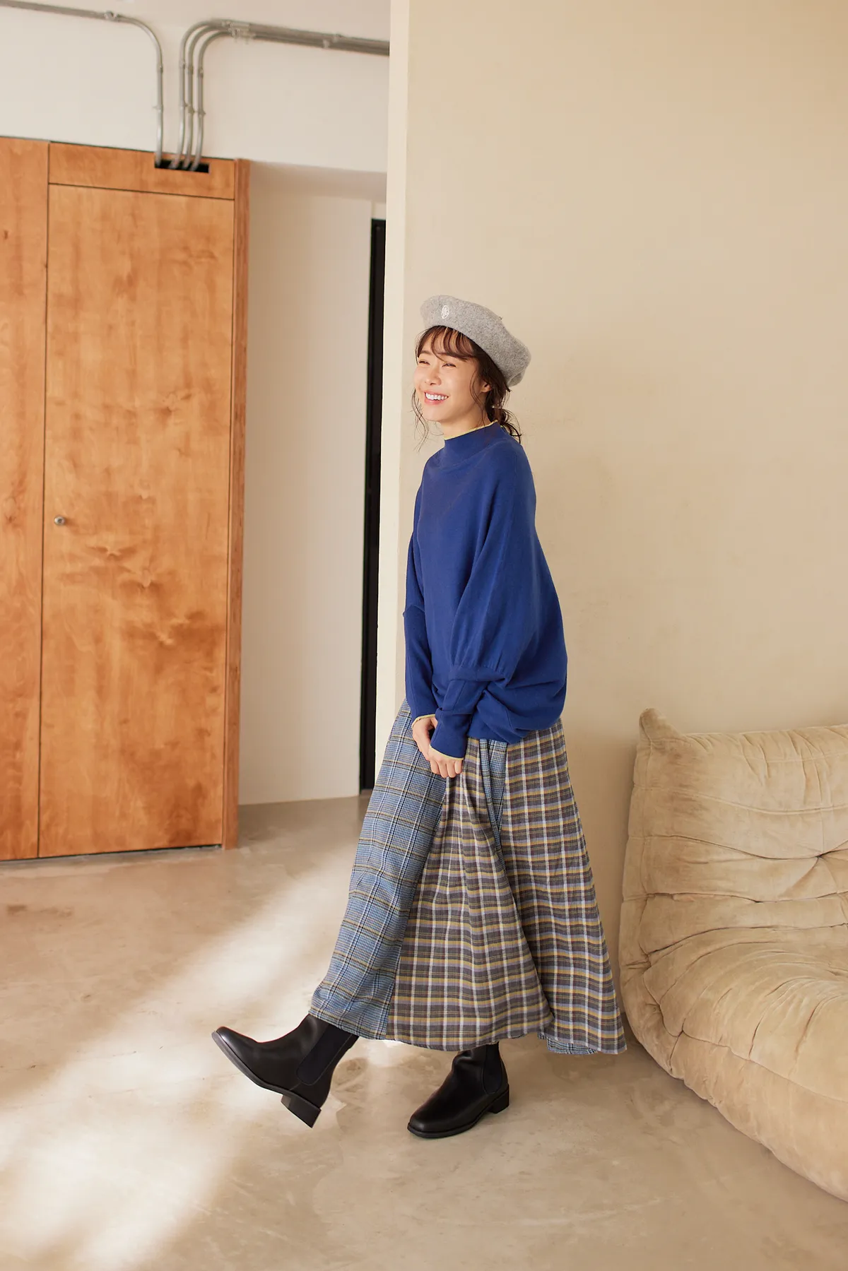 身體是斜斜的四方形,穿上的時候,腰部自然左右高低的堆積非常好看,完全隱藏肉肉。高寬領的設計,領口開開的不會憋著脖子,又能保暖,視覺感顯瘦。不管搭配褲子或裙子,甚至把連身的打底洋裝穿進去搭配都沒問題。非常好看,又有型的一件毛衣。
