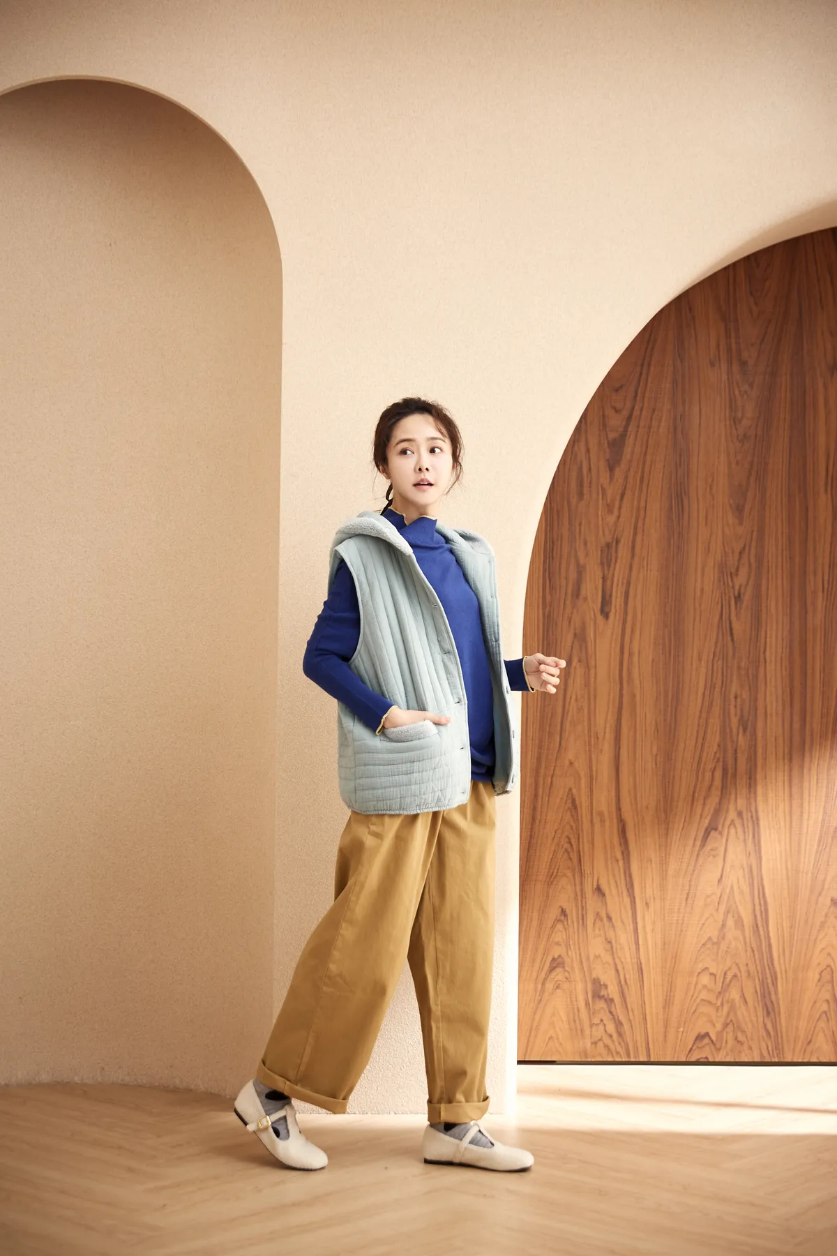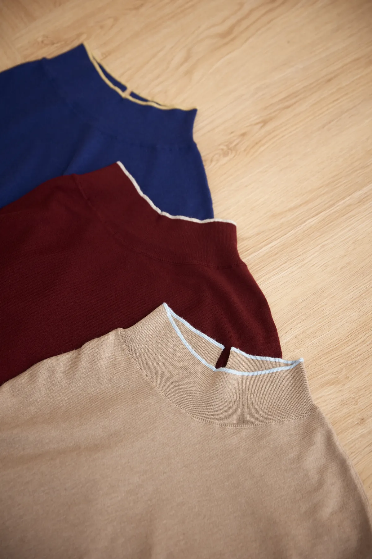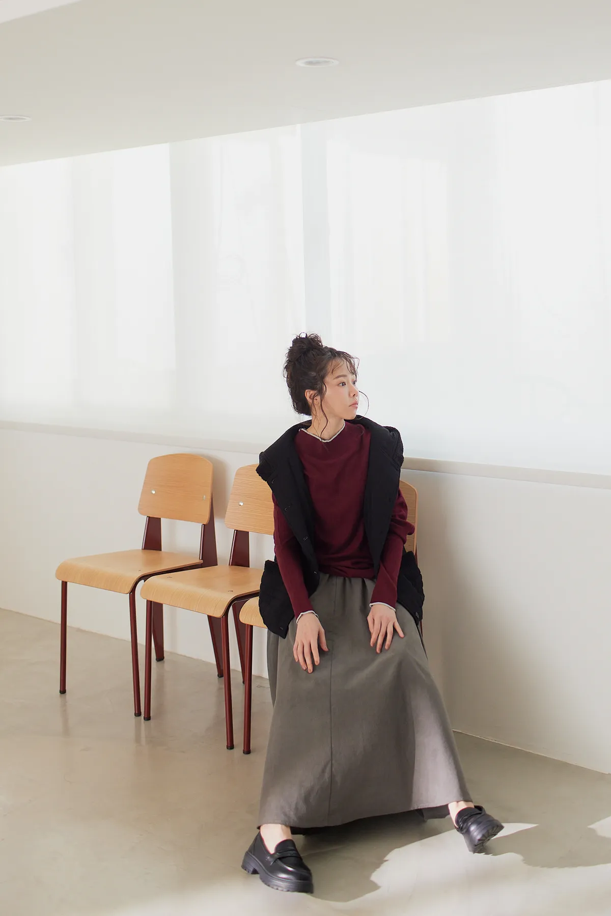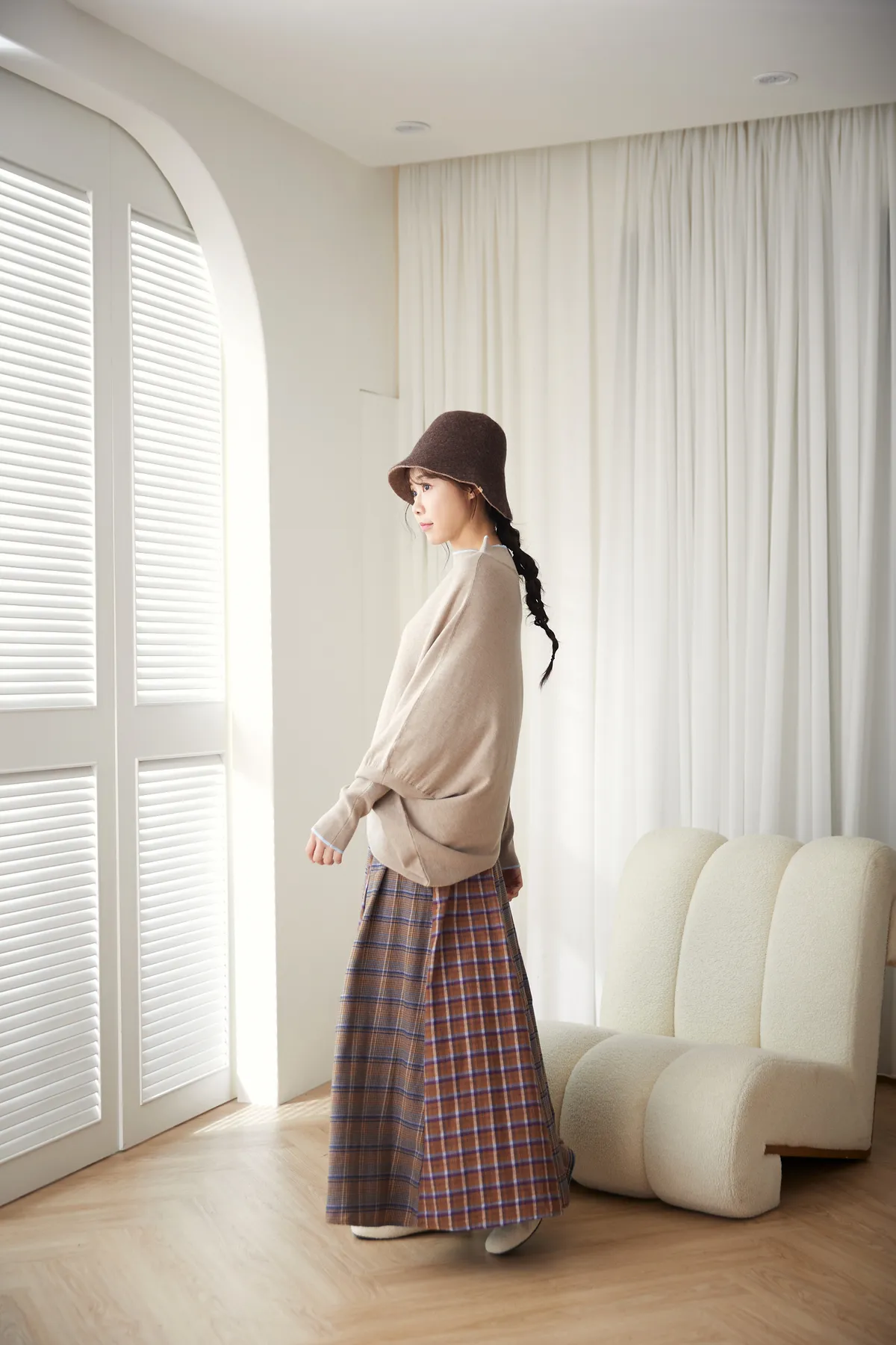 身體是斜斜的四方形,穿上的時候,腰部自然左右高低的堆積非常好看,完全隱藏肉肉。高寬領的設計,領口開開的不會憋著脖子,又能保暖,視覺感顯瘦。不管搭配褲子或裙子,甚至把連身的打底洋裝穿進去搭配都沒問題。非常好看,又有型的一件毛衣。