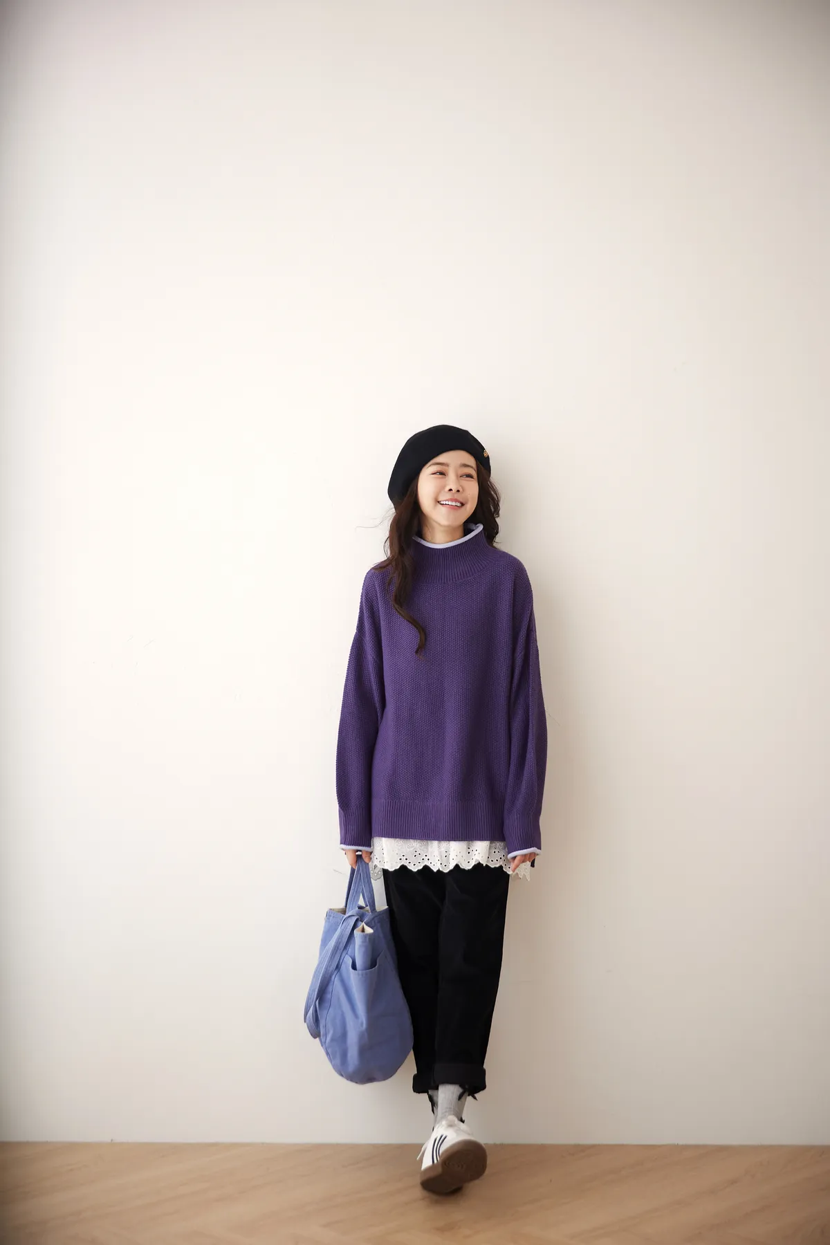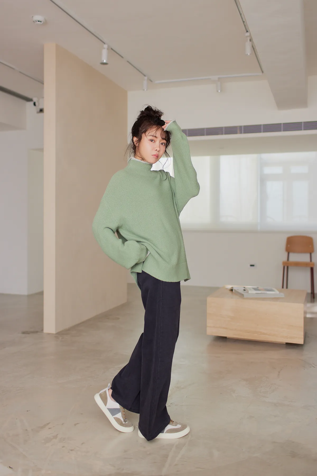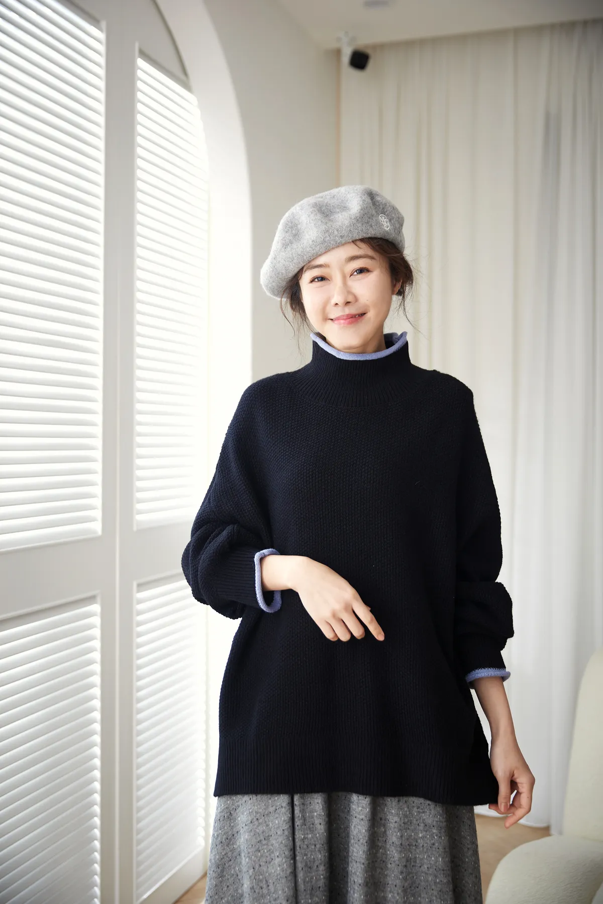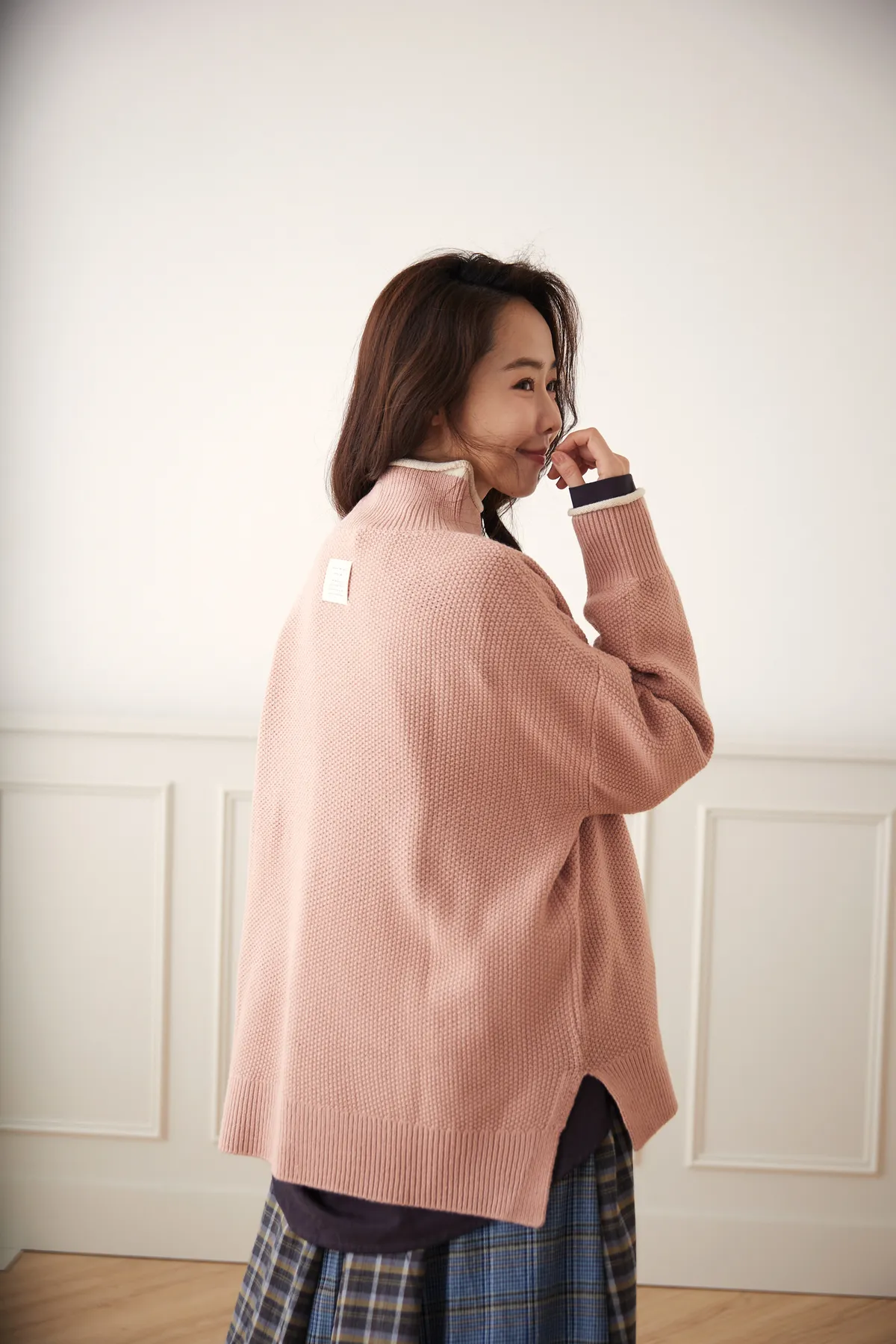 我最愛它的鬆鬆的高領設計,鬆鬆的不會整個勒住脖子,但又有高領帶來的保暖度,這樣鬆鬆的高領設計也不會因為太緊而讓整個臉看起來很腫!鬆弛感的高領,尺寸很大,外圈有小卷邊設計,這樣自然小卷邊設計還能帶出休閒感。