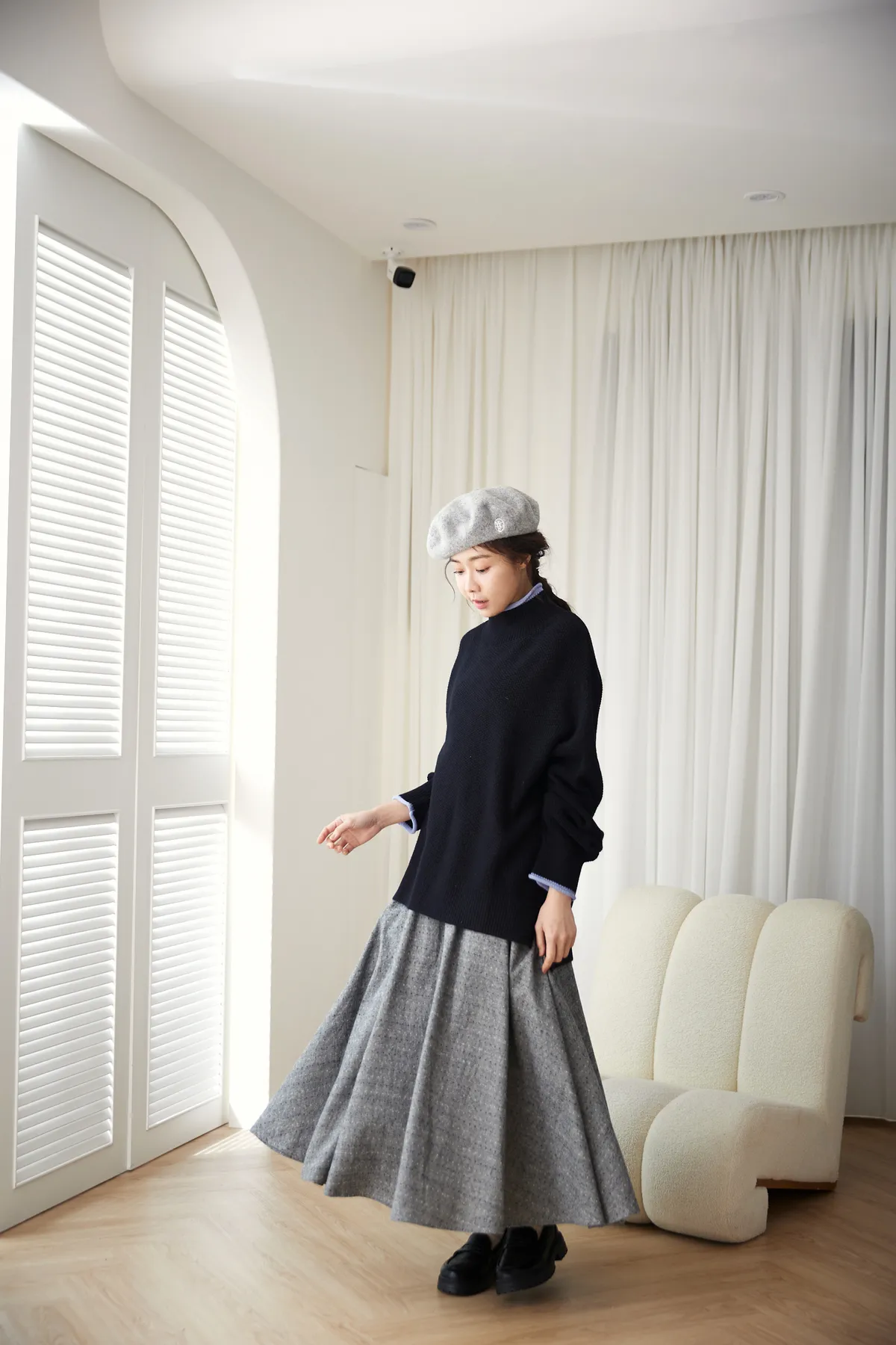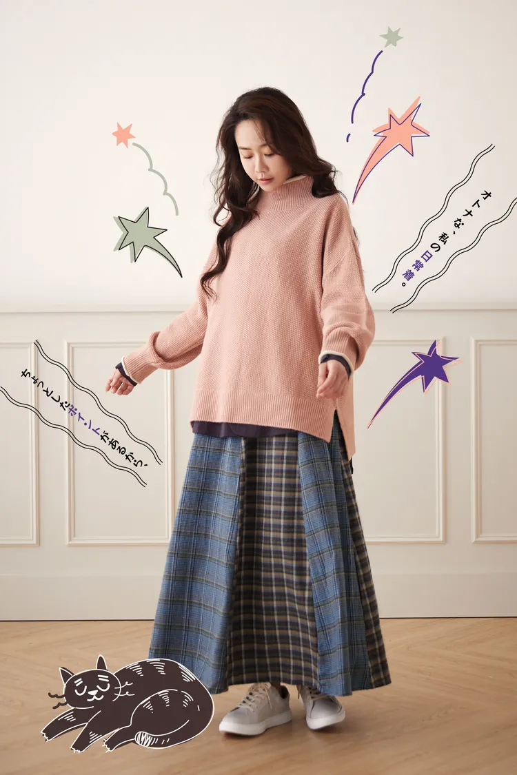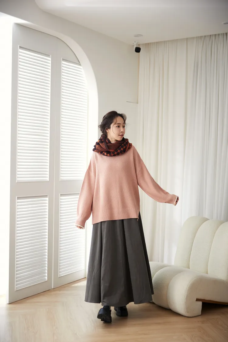 毛衣長度也是非常完美的長版蓋屁股,恰恰好修飾下半身,蓋住屁屁還能增添保暖度,也能內搭襯衫或打底,露出一小節下擺,這樣更是有層次感喔!寬鬆度也剛剛好不會太寬鬆的感覺但又能保有即便內搭一件內襯也不會卡卡的。
