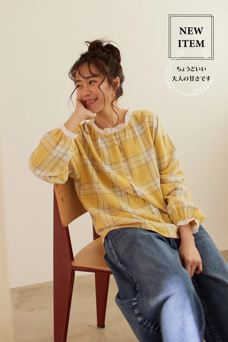 這件和冬天限定的蕾絲衫一樣!也是冬天限定磨毛材質,不愛針織毛衣,還是想要穿著一般棉料的單品,還有這件!使用100%棉材質,磨毛整理布面,觸感非常柔順,不會冰冰涼涼的,有微微的溫暖效果!