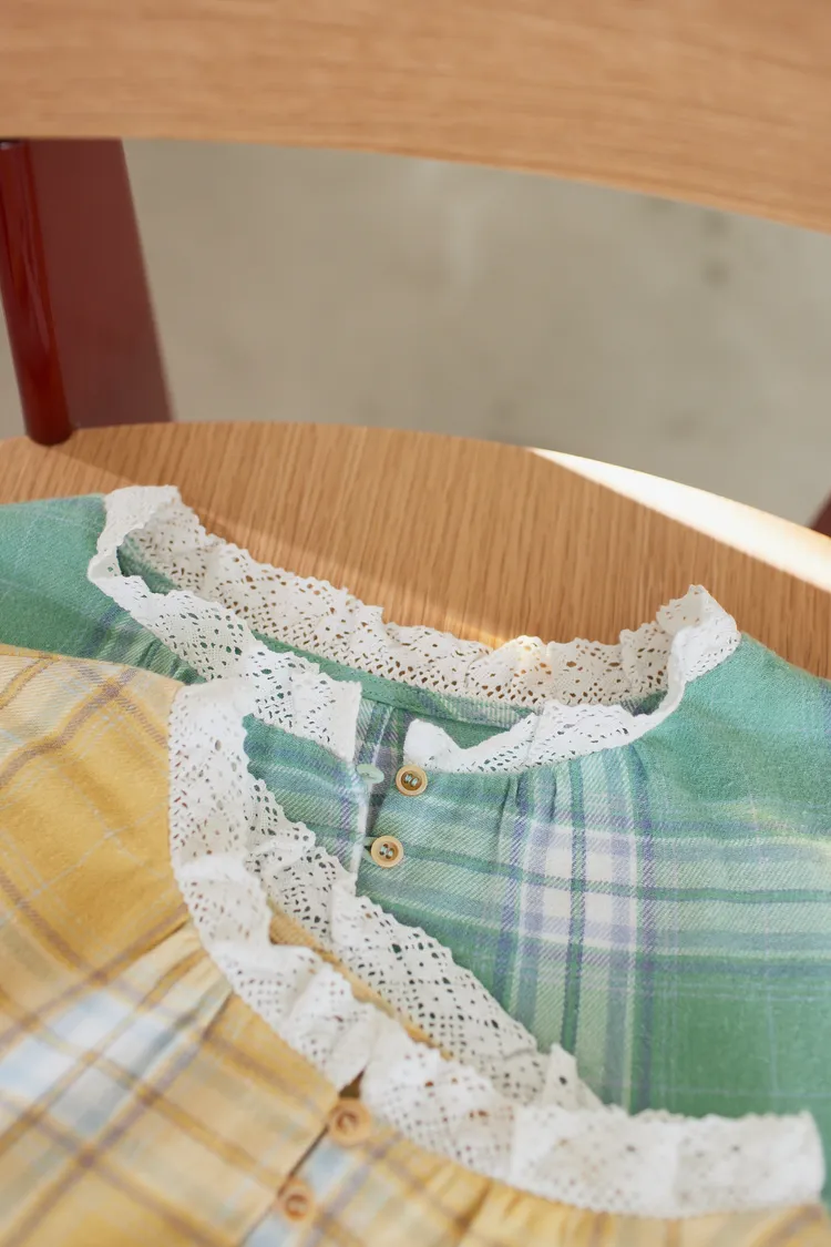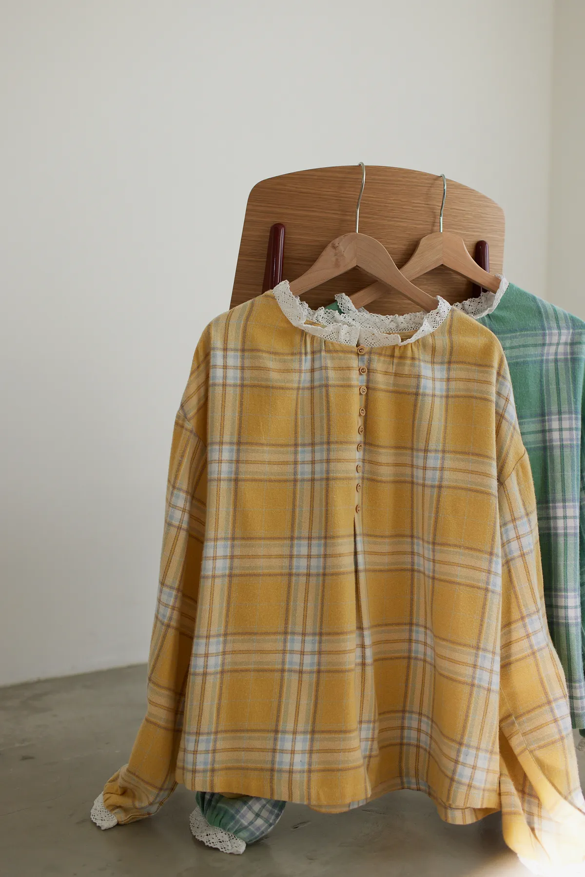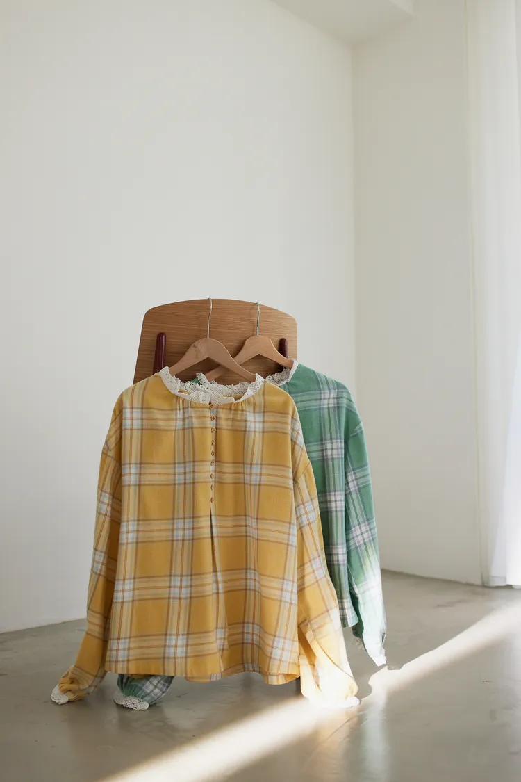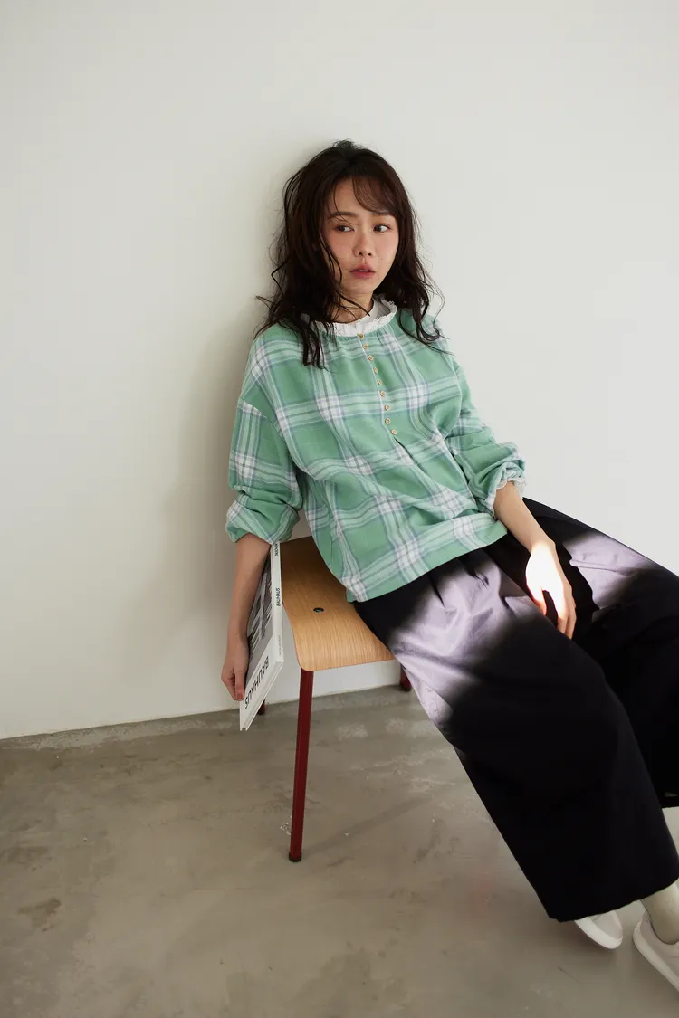 領口袖口精緻手工蕾絲點綴,小圓領長排扣外型,減齡清新的形象十足。正面中心有一個合折設計,穿著更顯休閒寬鬆/袖口鬆緊帶,往上一魯,靈活做事好方便。色系也是輕快有朝氣的薄荷綠跟奶油黃,走春超級適合~這件的版也是不挑下身,配起來都好看的款式喔!