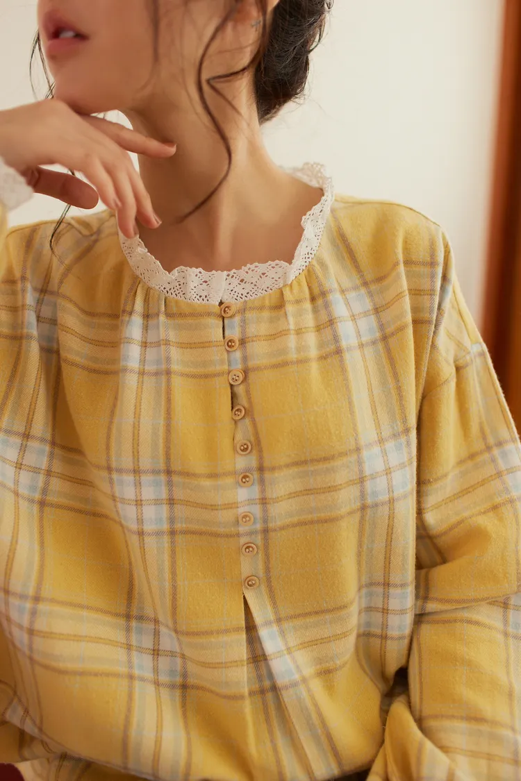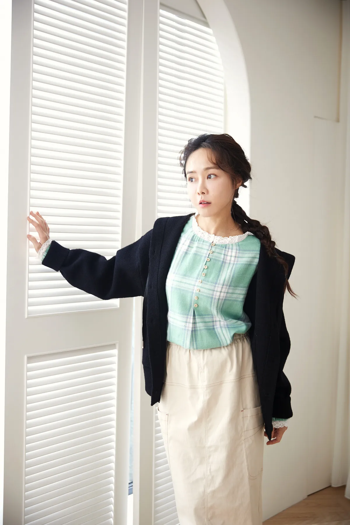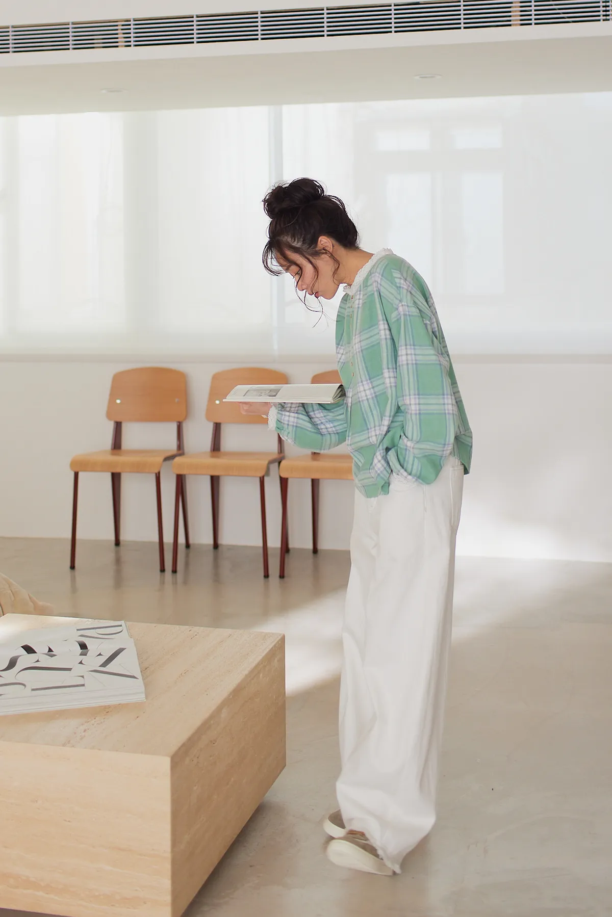 領口袖口精緻手工蕾絲點綴,小圓領長排扣外型,減齡清新的形象十足。正面中心有一個合折設計,穿著更顯休閒寬鬆/袖口鬆緊帶,往上一魯,靈活做事好方便。色系也是輕快有朝氣的薄荷綠跟奶油黃,走春超級適合~這件的版也是不挑下身,配起來都好看的款式喔!