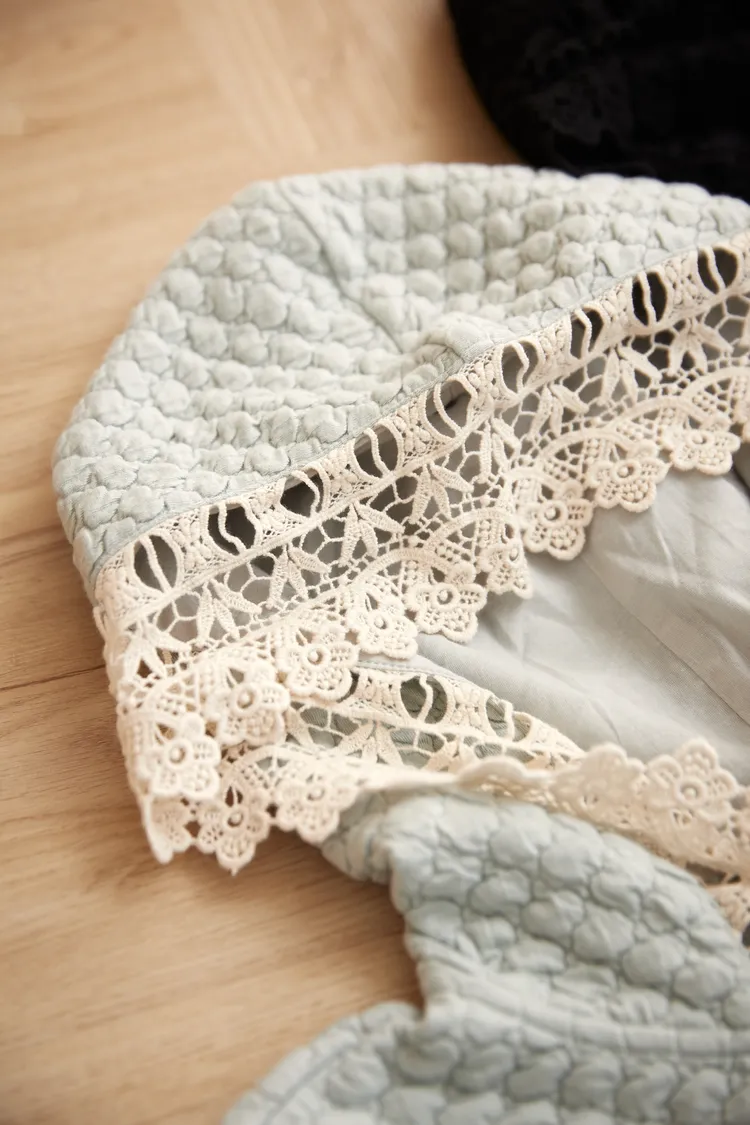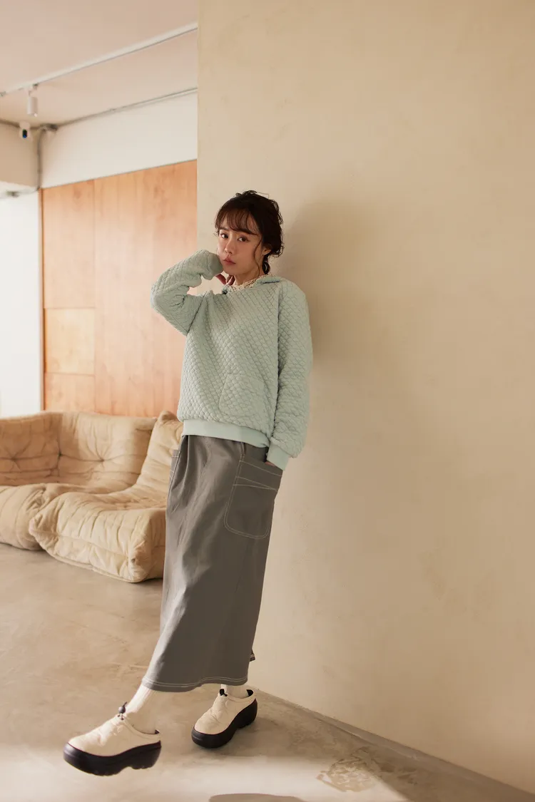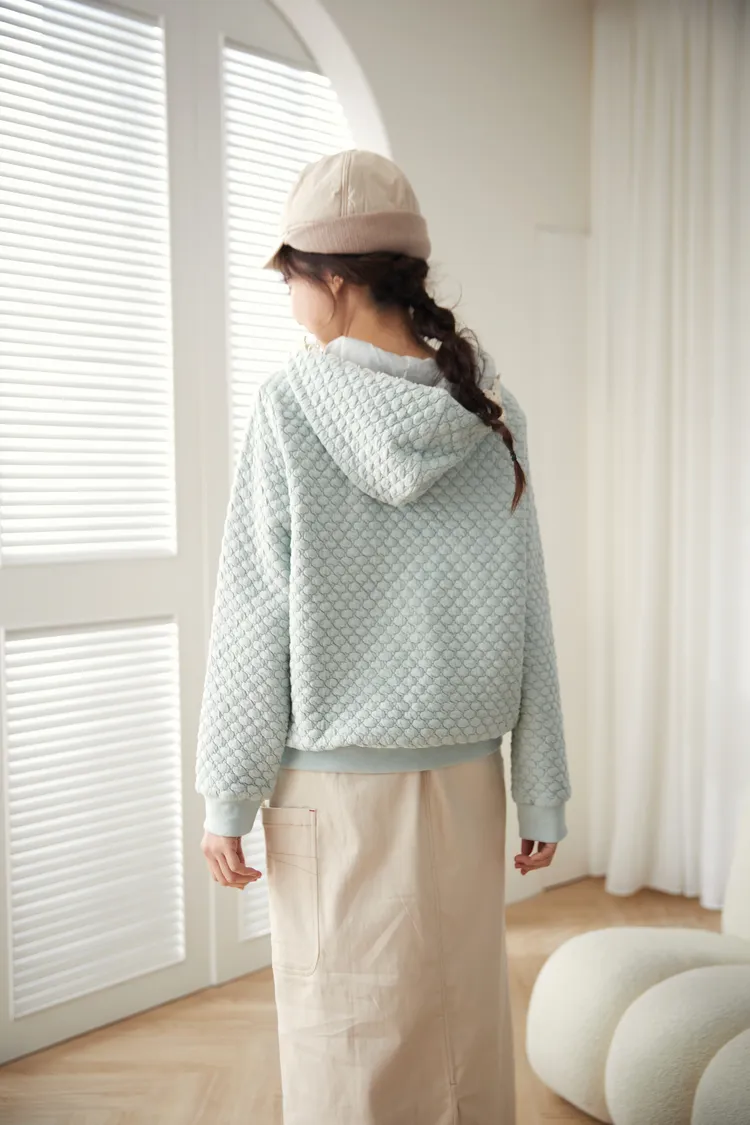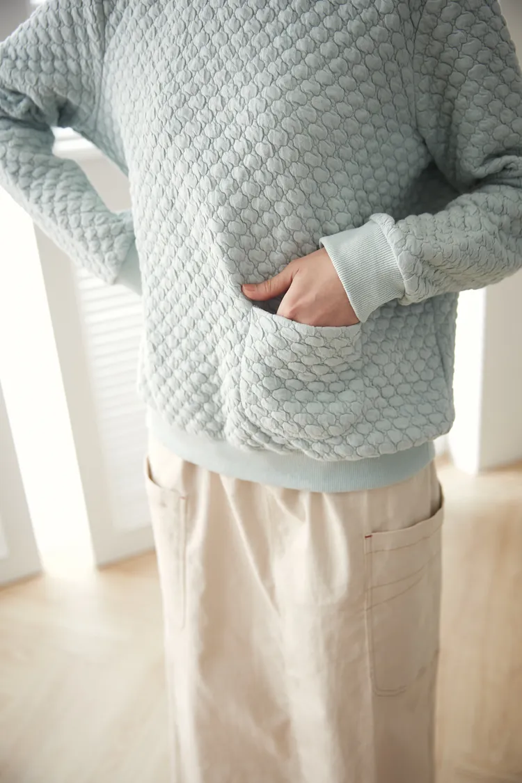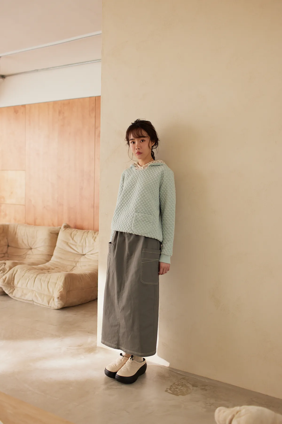帽子外使用全棉的經編蕾絲,搭配澎澎布棉,非常可愛,無論從背面側面都能看到微微的蕾絲,好精緻的樣式!剛剛好的版型,不會因為穿著帽T而看起來臃腫沒精神,這件適合搭配各種寬鬆下半身,能提升身材比例,還有個小口袋增添造型感。