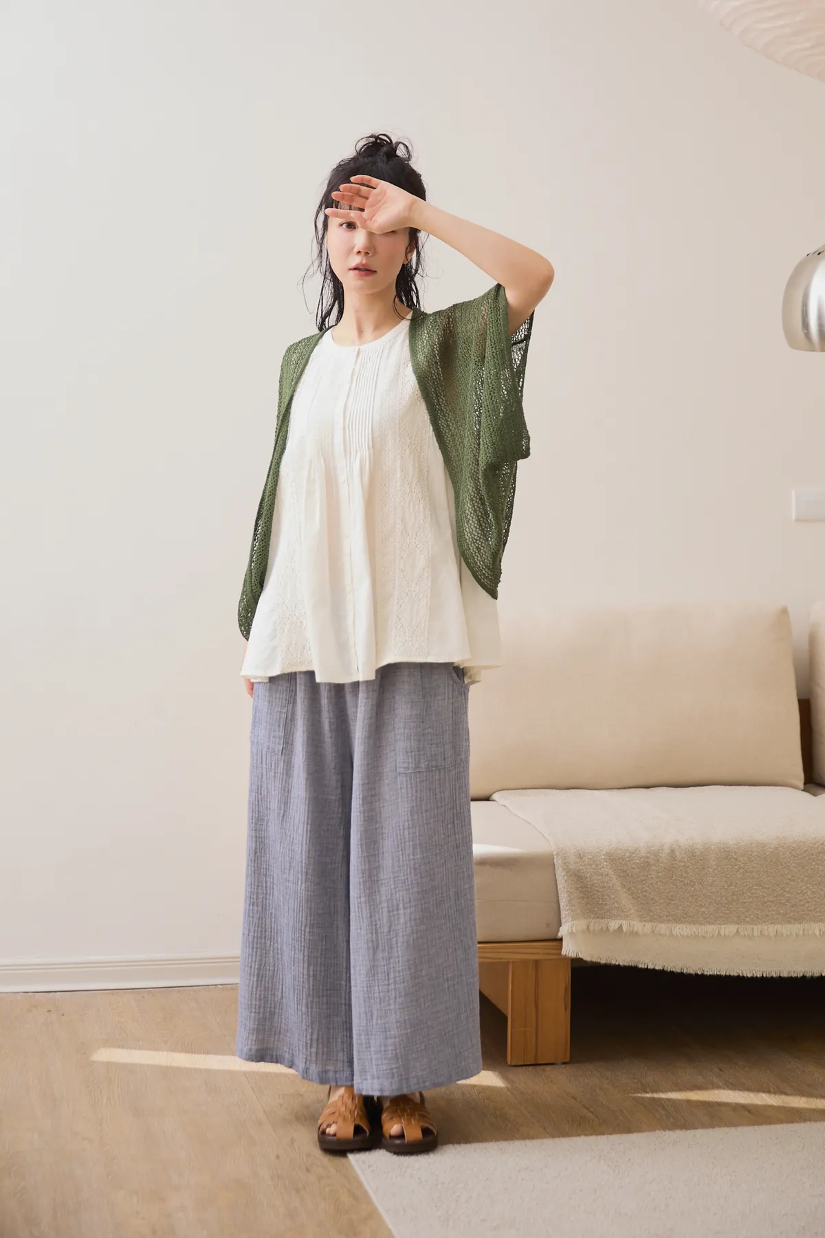 這條寬褲每年一上市,瞬間被掃光,錯過的人今年一定會後悔!親膚透氣的雙層W紗布料,穿上彷彿沒穿褲子一樣輕盈自在,讓你夏天有種走進薄霧般的清涼感。