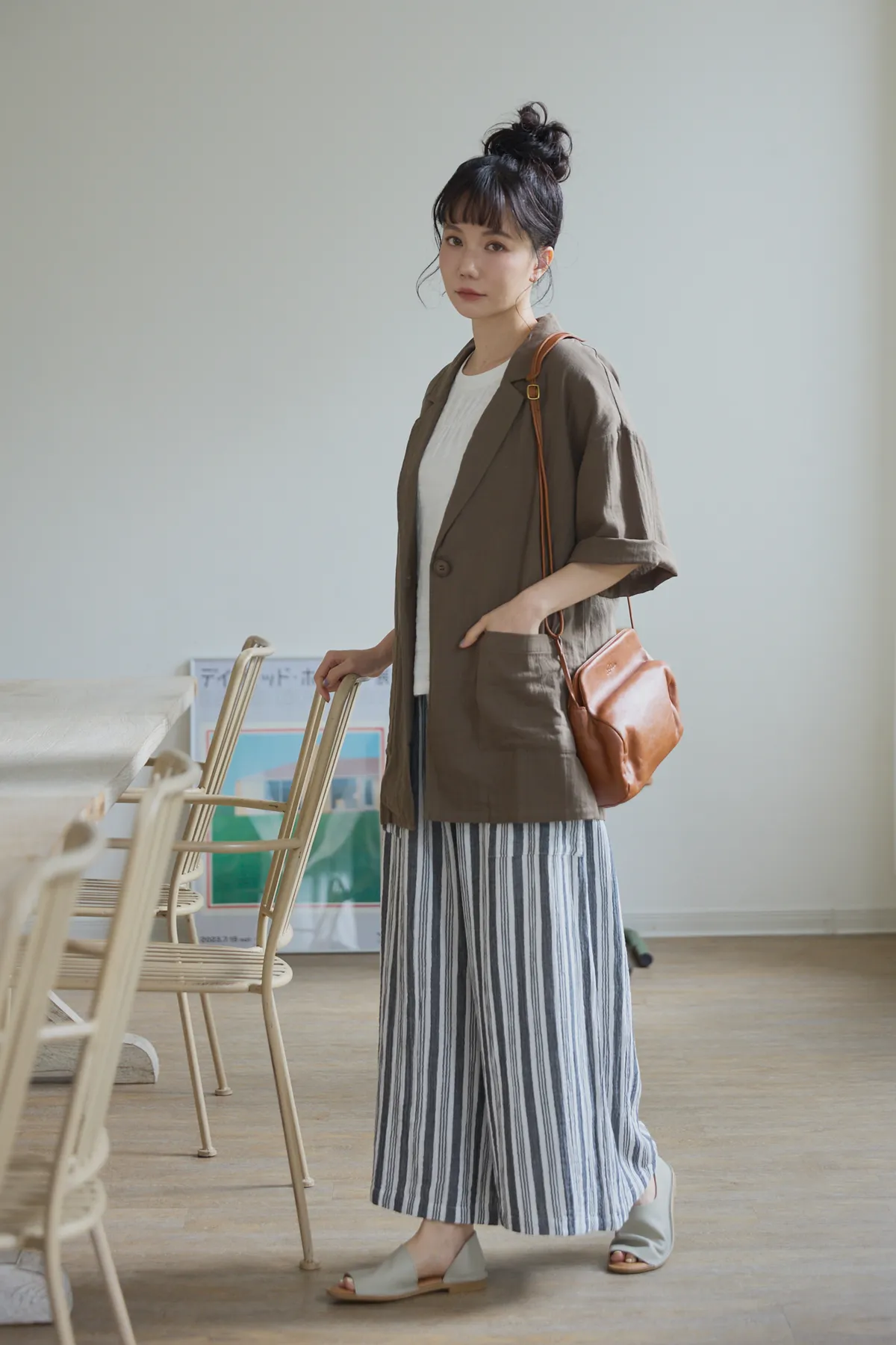 褲長剛好露出腳踝,完美搭配涼鞋、球鞋或拖鞋。