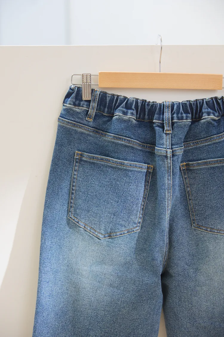 深水洗與刷白的巧妙配置,讓下半身線條利落但不緊繃,是真正「顯瘦又舒服」的組合。走路、蹲下、騎車都沒問題,能搭 oversize 毛衣、短版針織或大學T,露出一點腳踝,整體氣場立刻提升;配靴子或球鞋也都合拍。