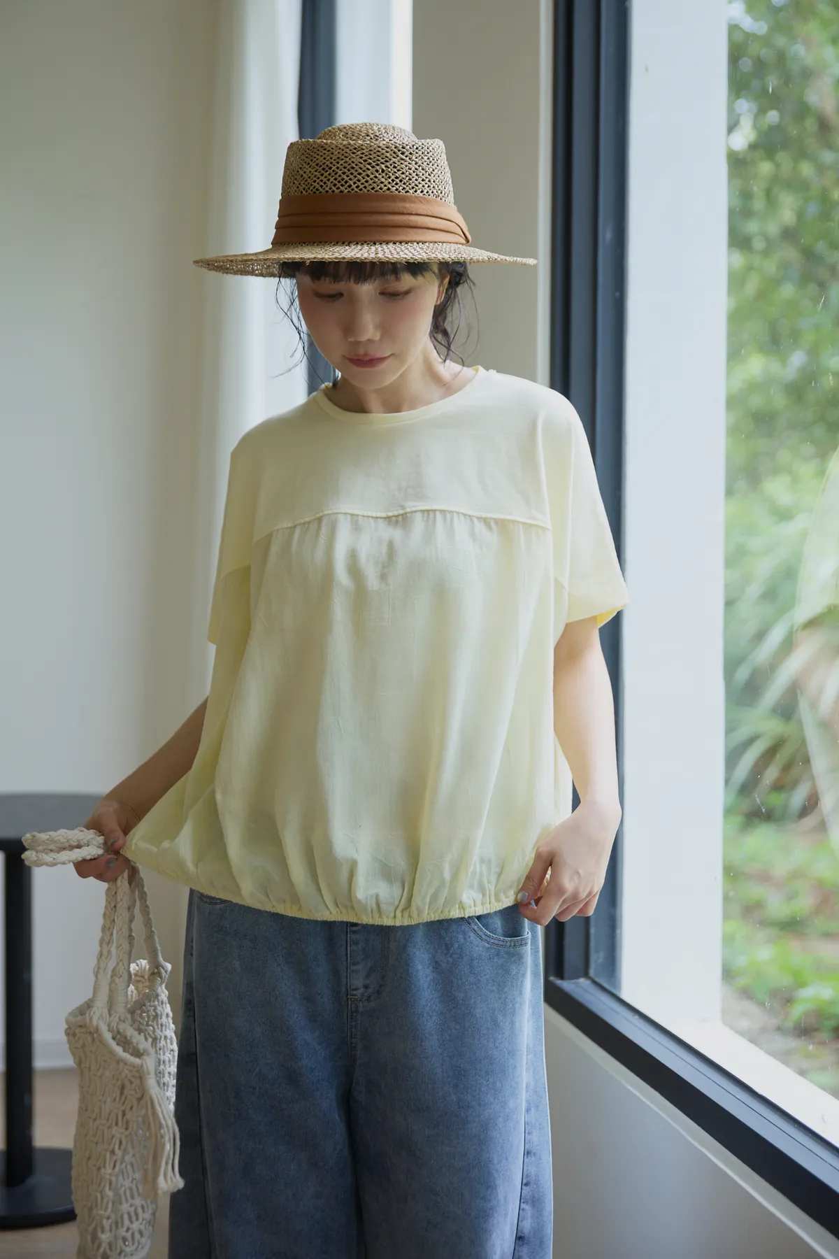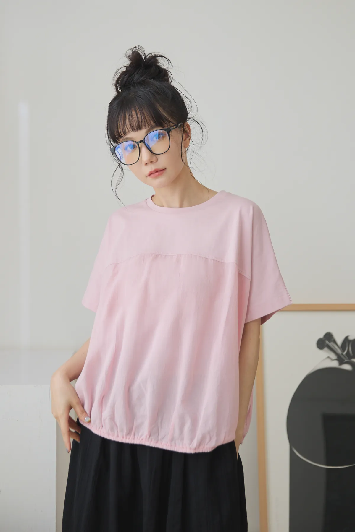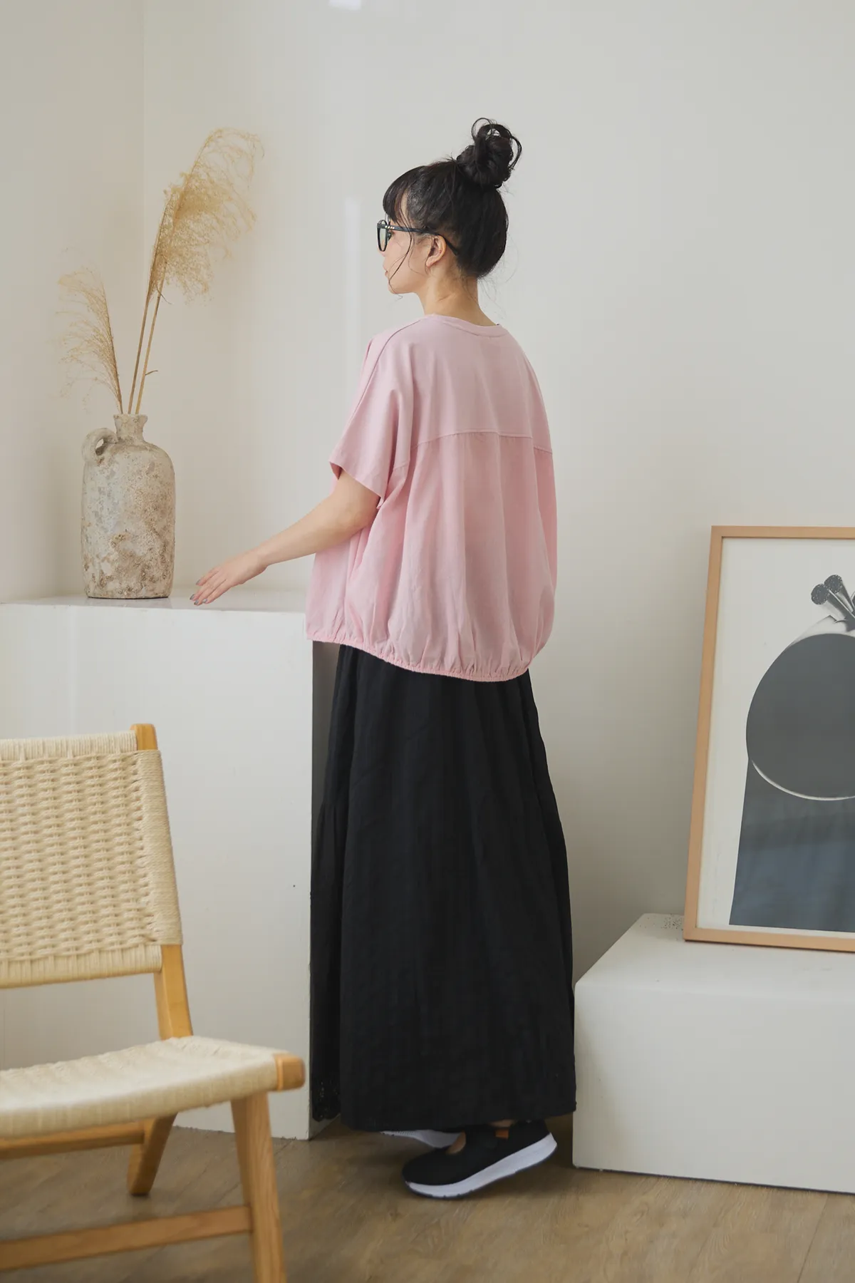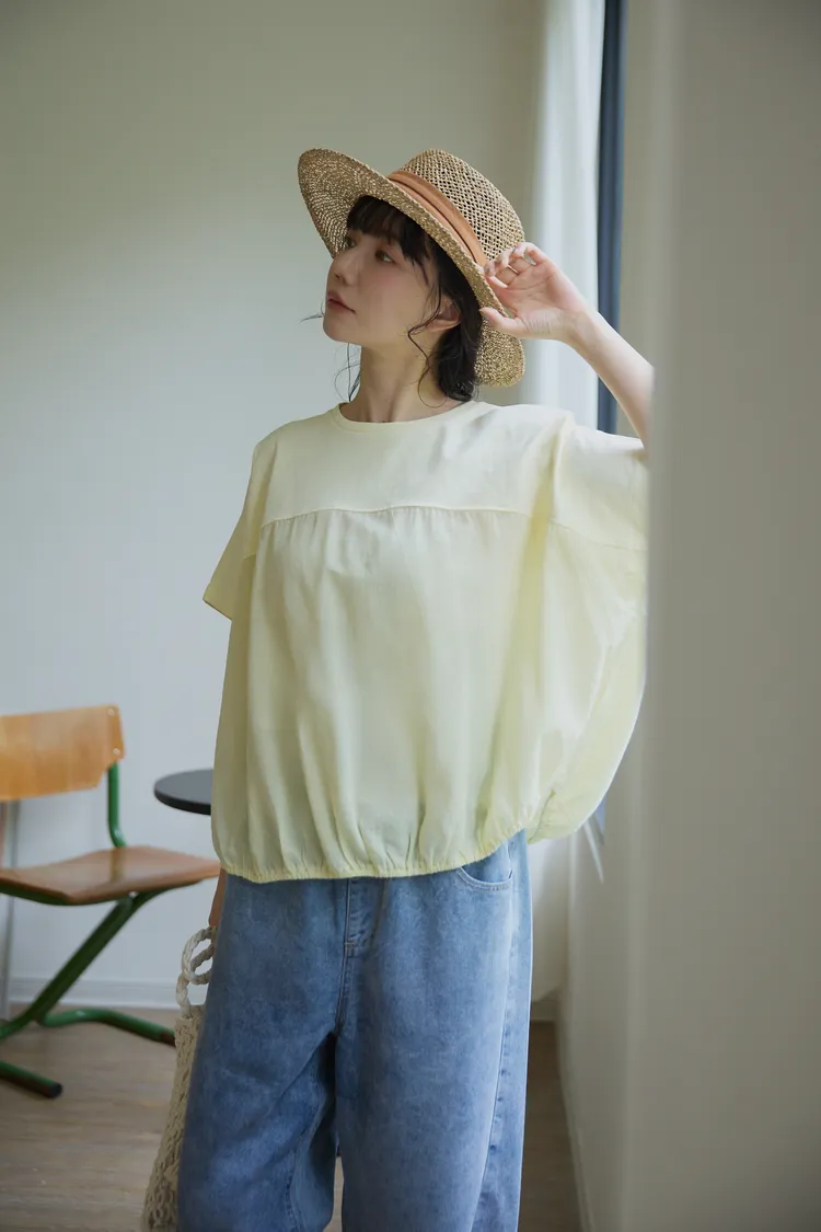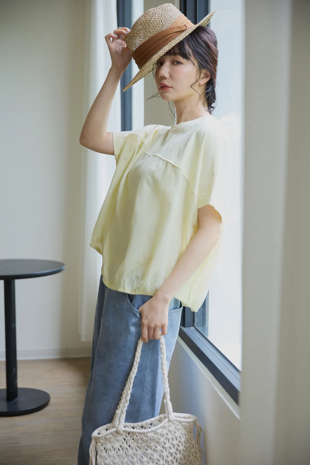 這件真的會讓妳忍不住包色!因為它太會修飾了,而且夏天一週七天都能輪著穿,顏色全都好看到爆。我們這個年紀,夏天穿衣最大的痛點就是——手臂鬆肉、小腹凸凸、布料一悶就皺又黏皮膚。這件一次直接解決這三大煩惱。連袖的剪裁把二の腕包得剛剛好;下擺鬆鬆微泡泡的設計,腰間和小腹立刻像消失一樣,視覺整個小一號。