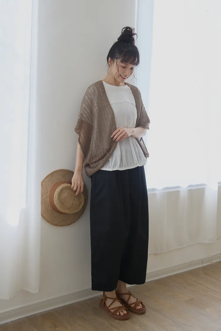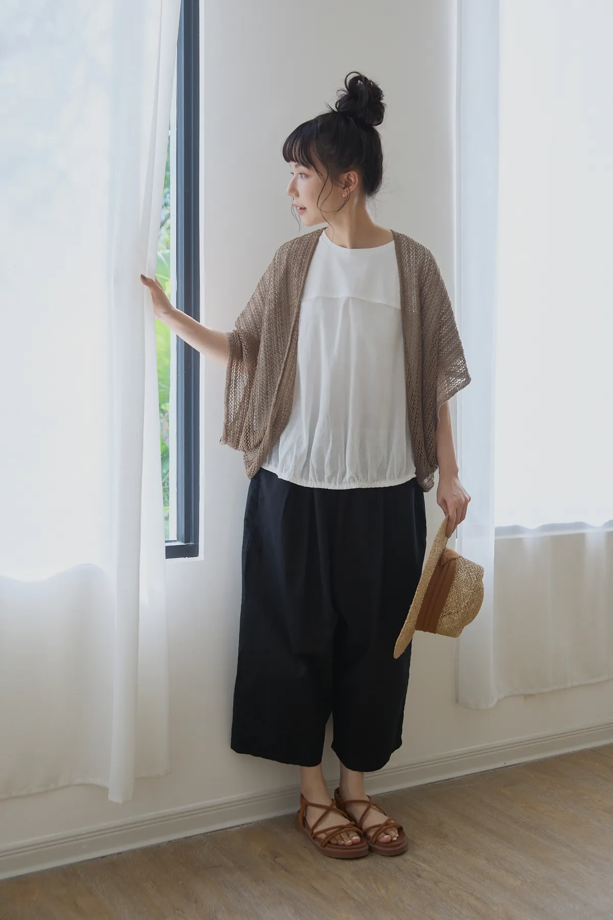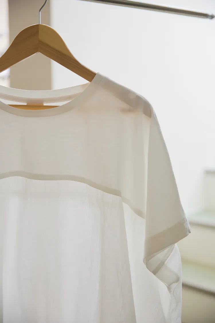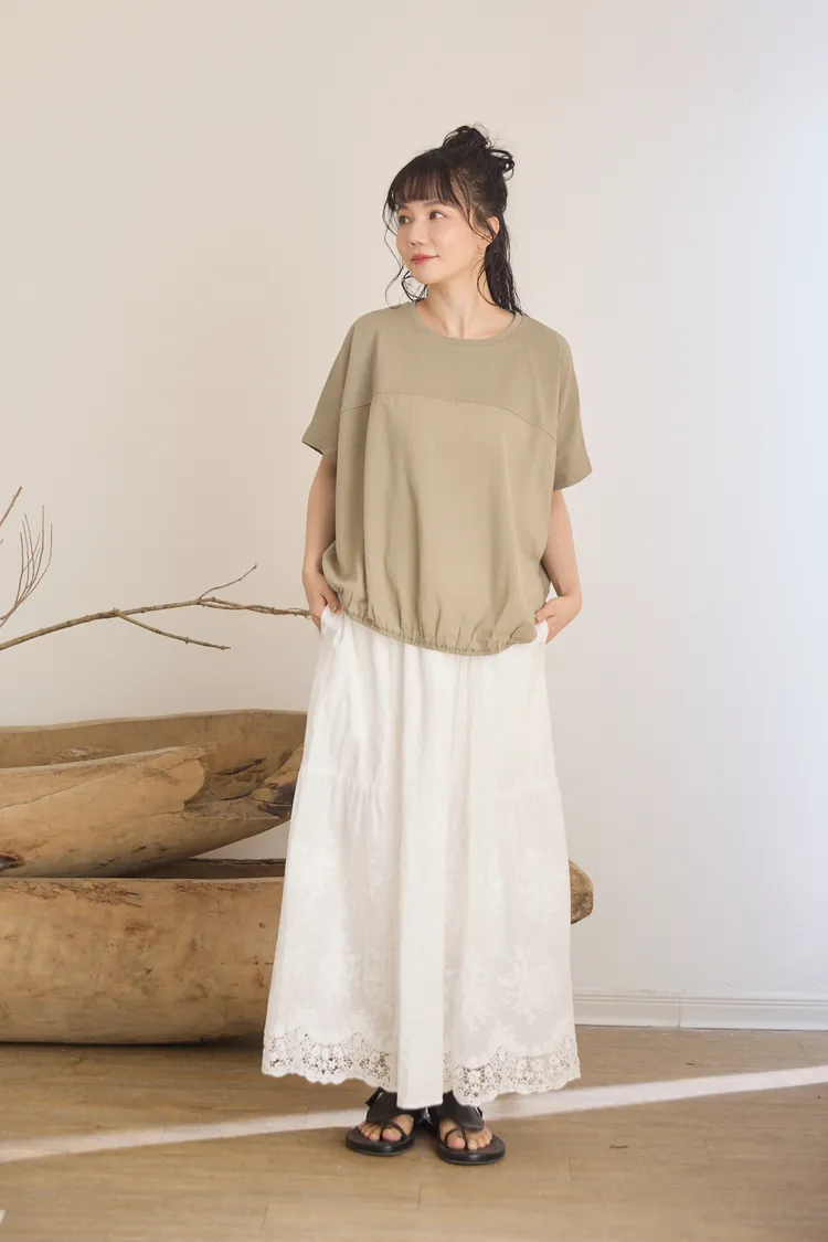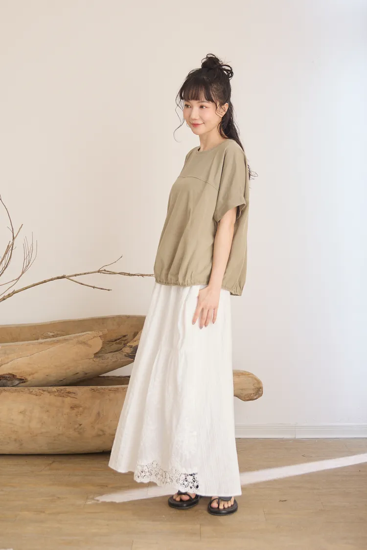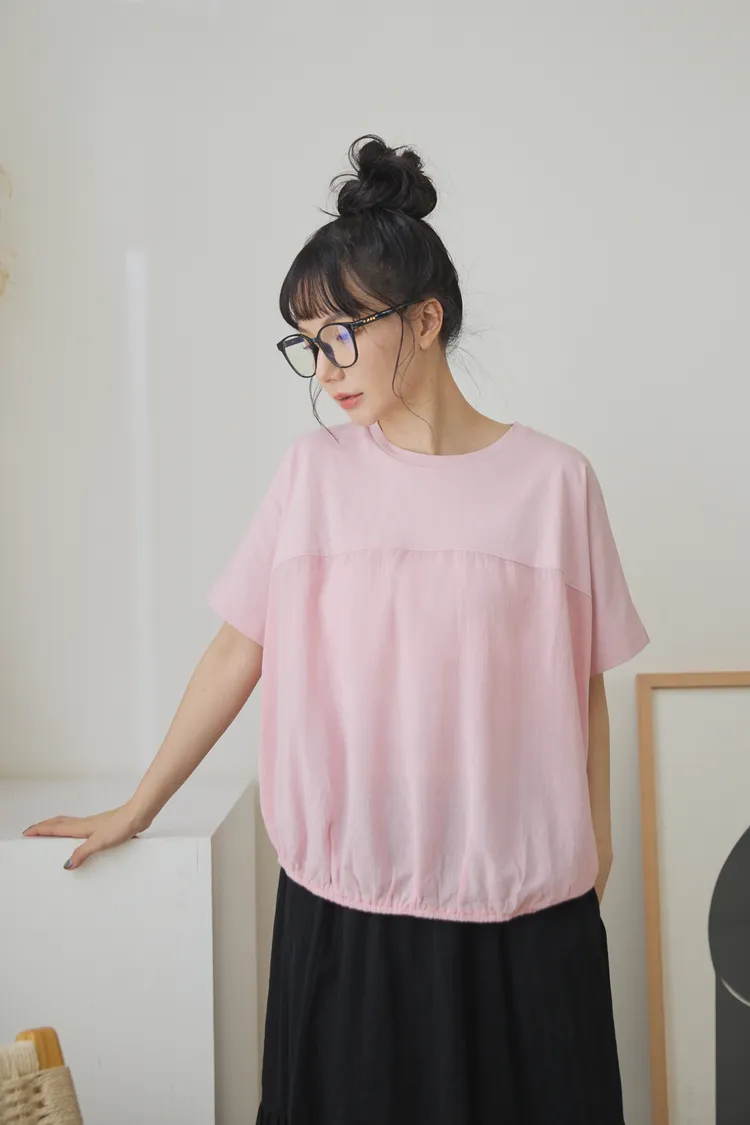 這件真的會讓妳忍不住包色!因為它太會修飾了,而且夏天一週七天都能輪著穿,顏色全都好看到爆。我們這個年紀,夏天穿衣最大的痛點就是——手臂鬆肉、小腹凸凸、布料一悶就皺又黏皮膚。這件一次直接解決這三大煩惱。連袖的剪裁把二の腕包得剛剛好;下擺鬆鬆微泡泡的設計,腰間和小腹立刻像消失一樣,視覺整個小一號。