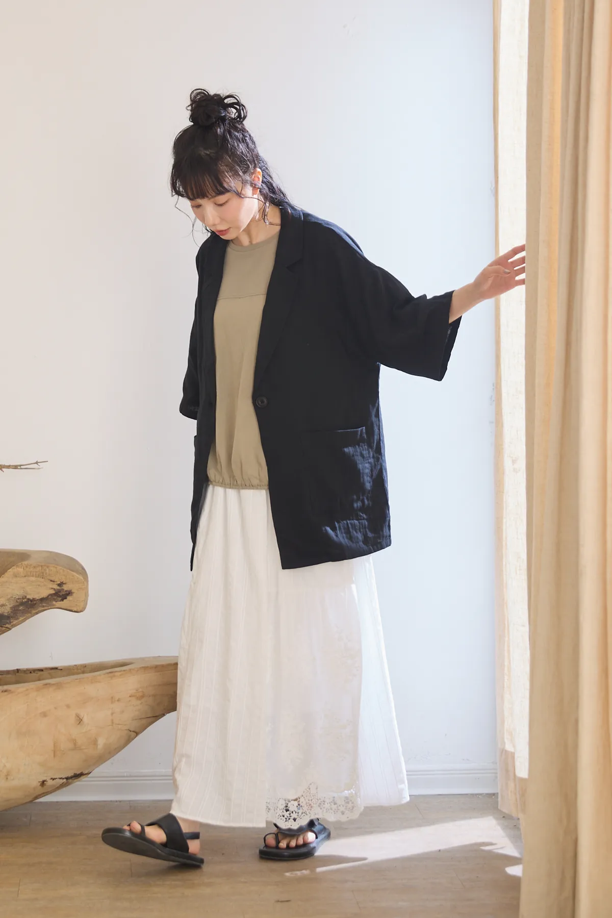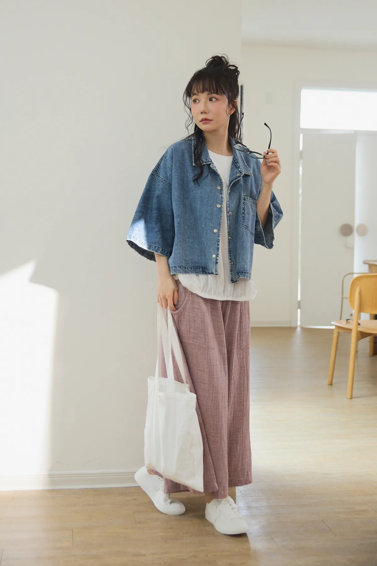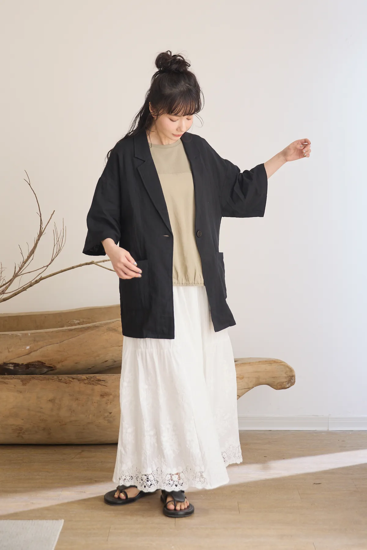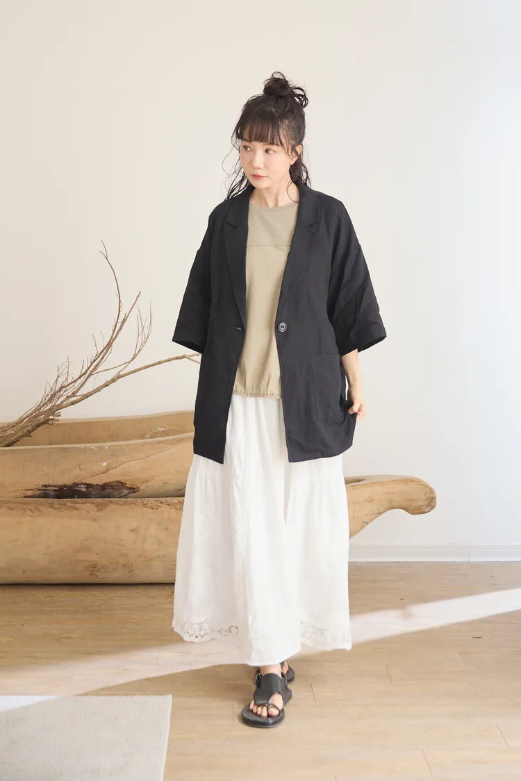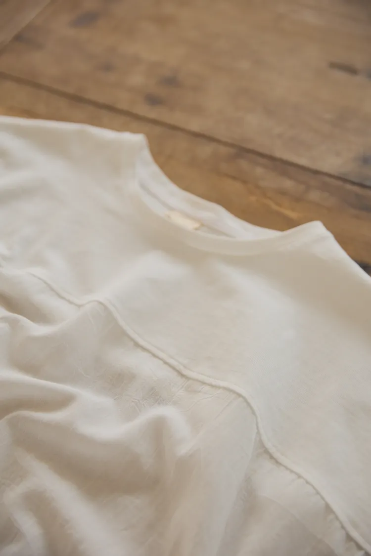 這件真的會讓妳忍不住包色!因為它太會修飾了,而且夏天一週七天都能輪著穿,顏色全都好看到爆。我們這個年紀,夏天穿衣最大的痛點就是——手臂鬆肉、小腹凸凸、布料一悶就皺又黏皮膚。這件一次直接解決這三大煩惱。連袖的剪裁把二の腕包得剛剛好;下擺鬆鬆微泡泡的設計,腰間和小腹立刻像消失一樣,視覺整個小一號。