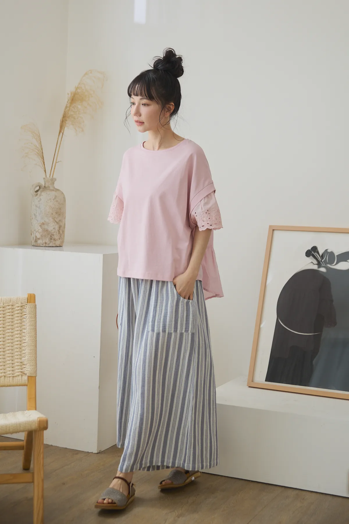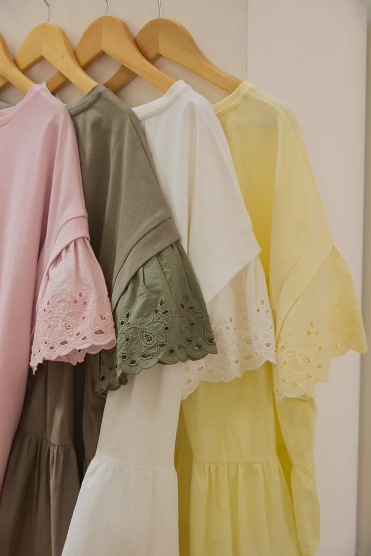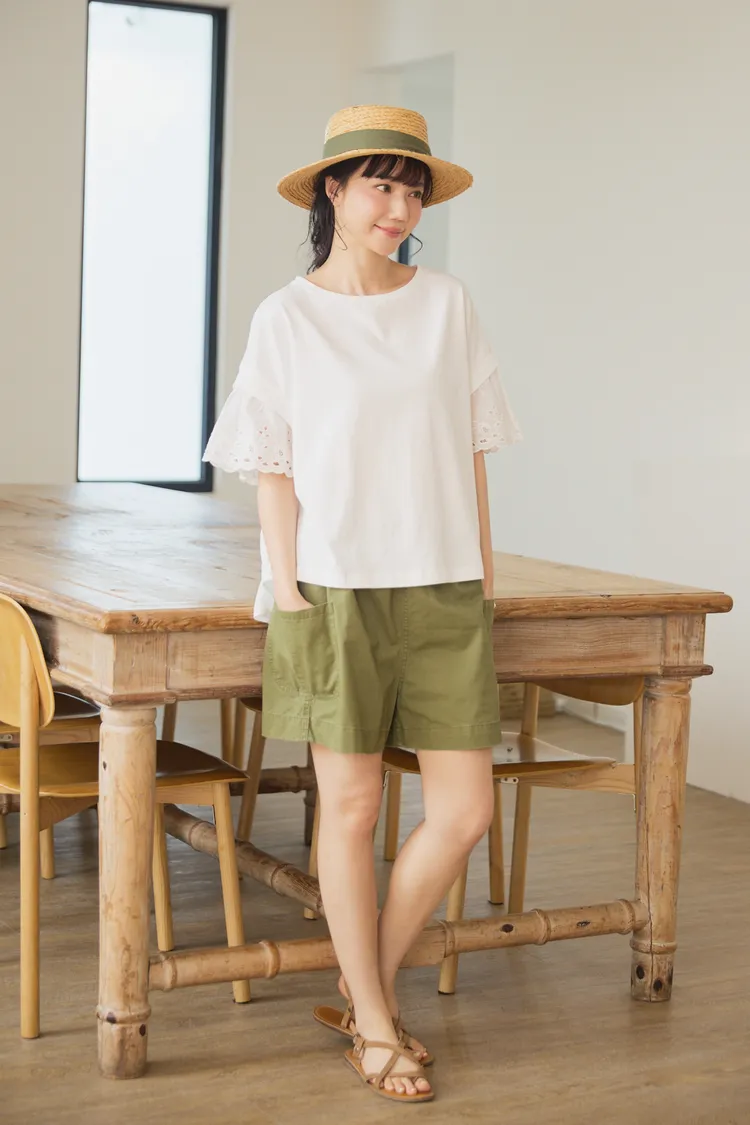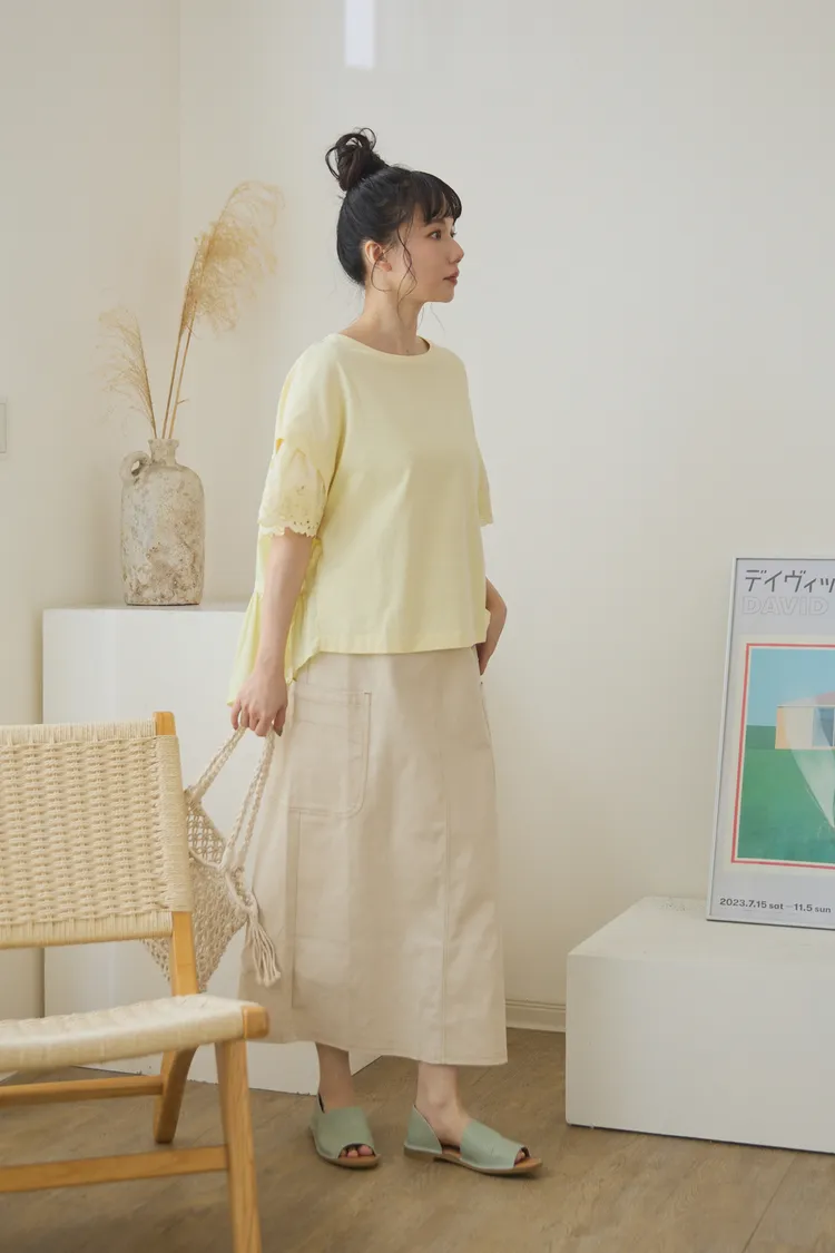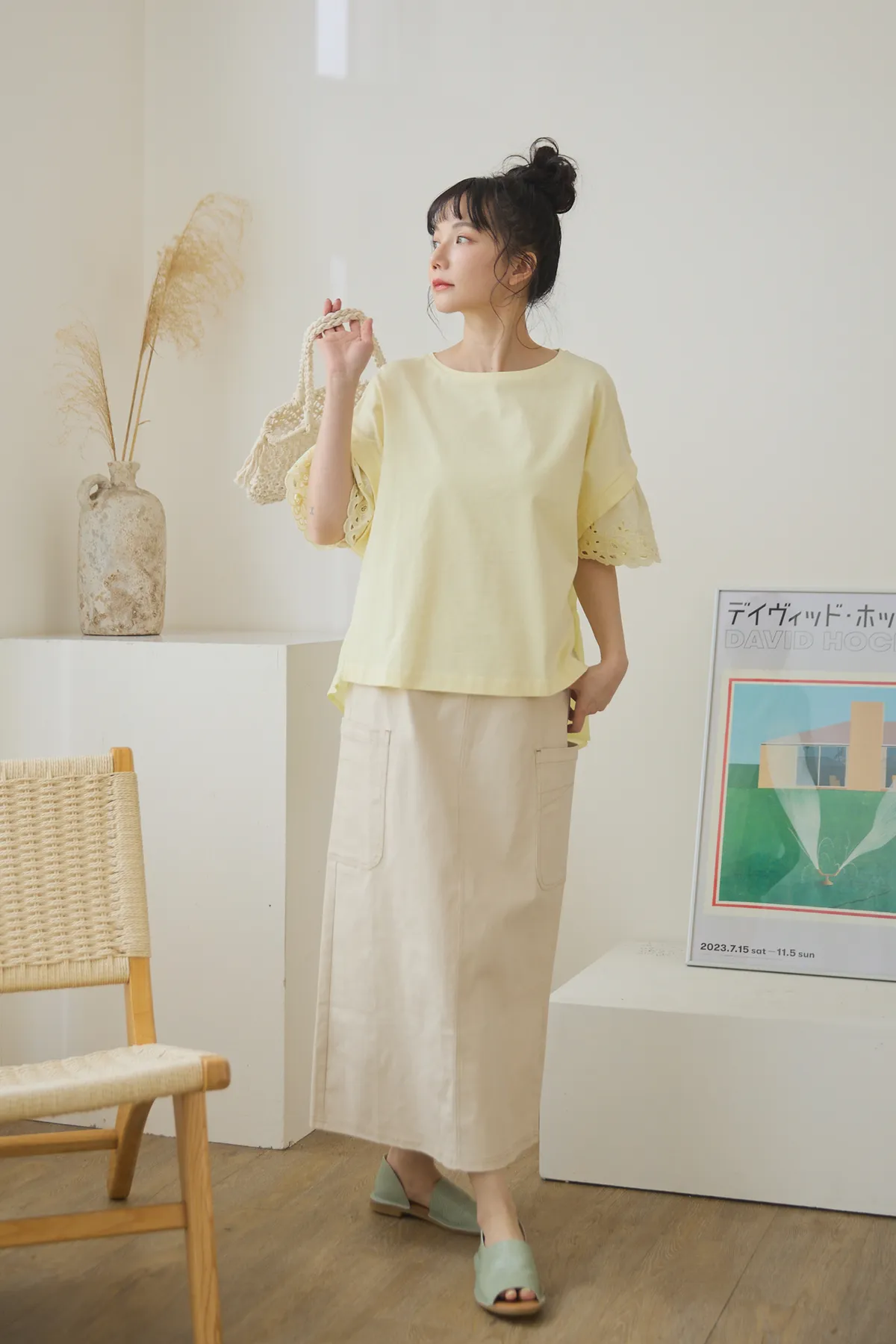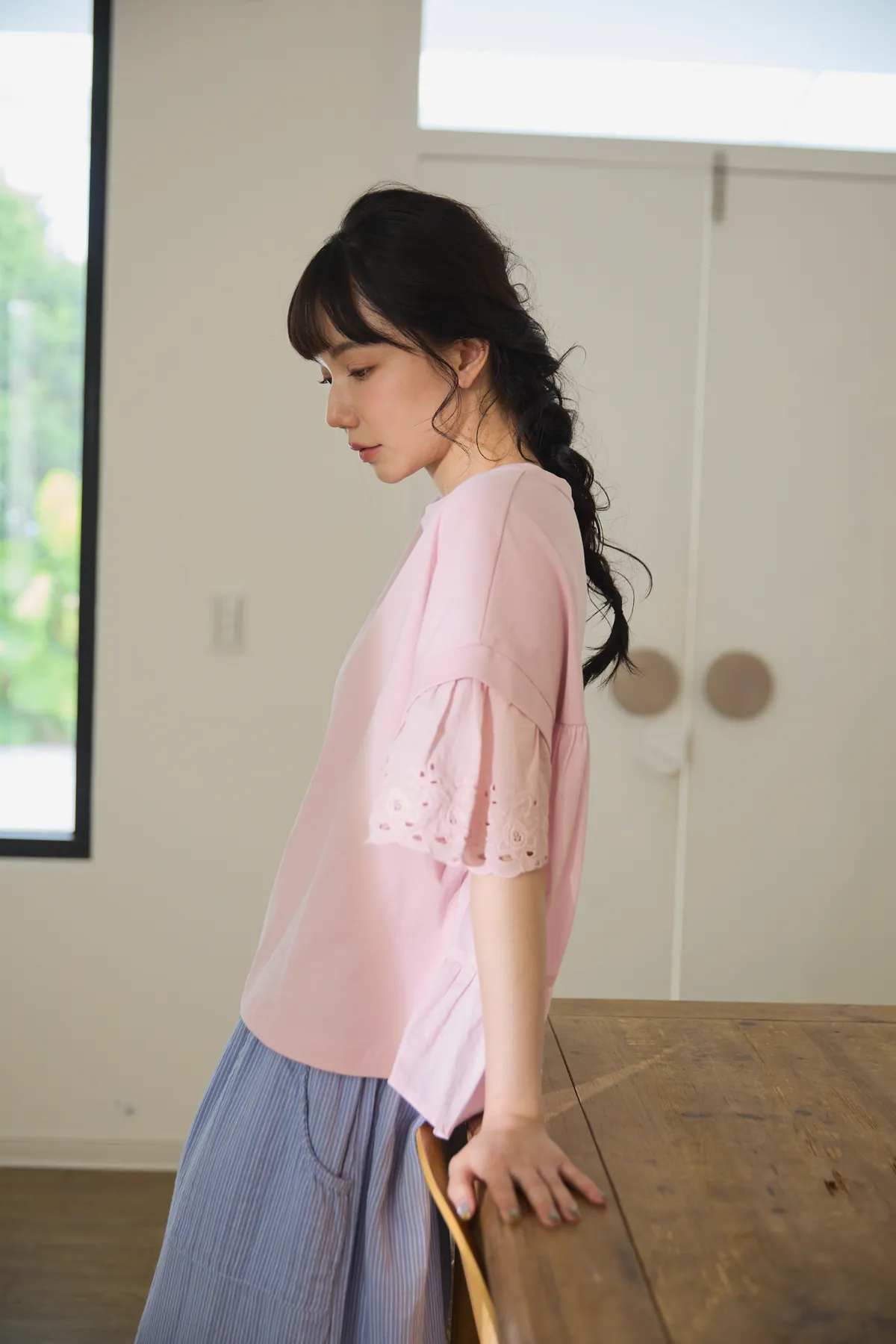 拼接棉質鏤空蕾絲,兼具透氣與挺度。切得剛剛好,可以修飾手臂線條,不會垮也不會勒。版型貼心=誰穿都修飾