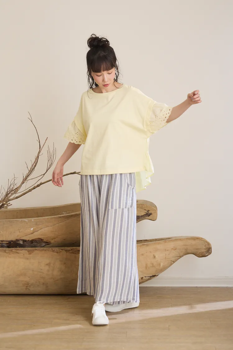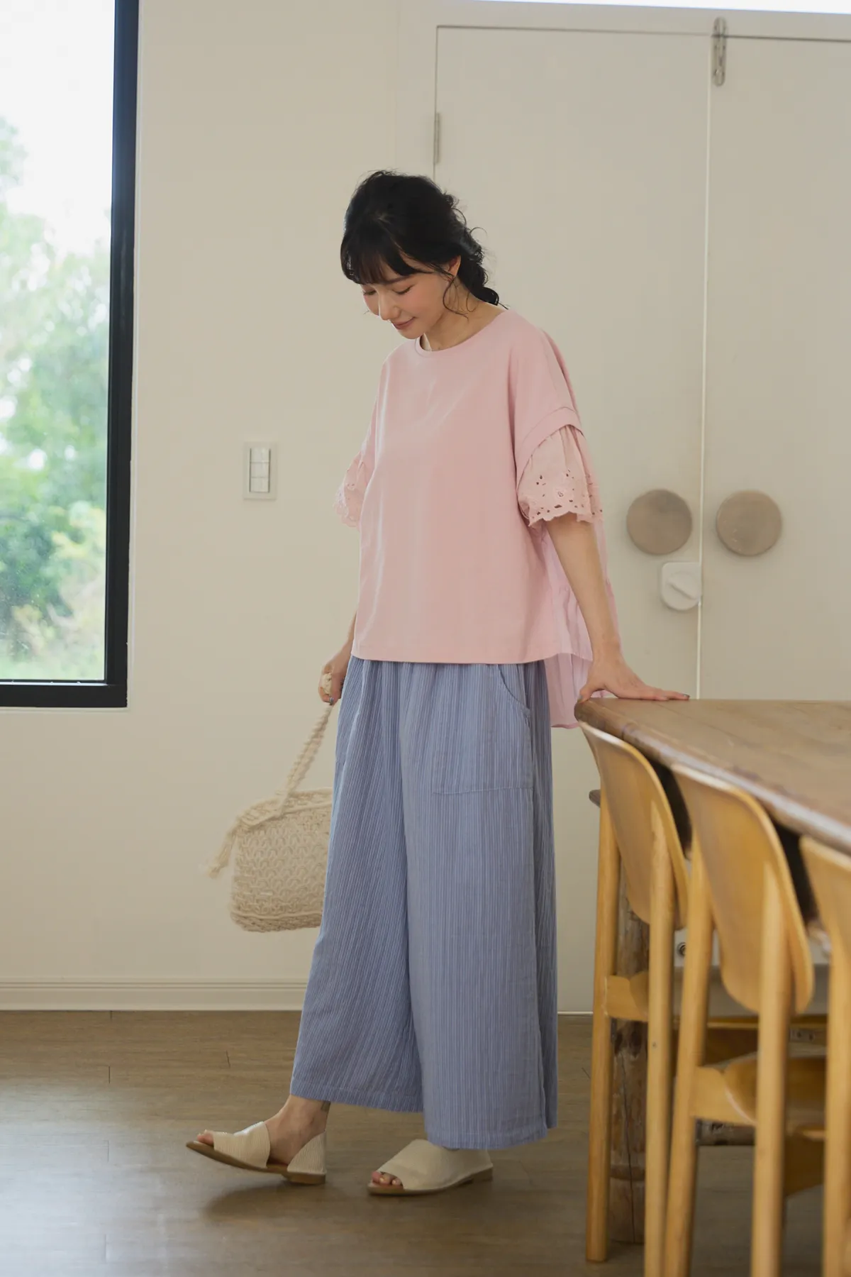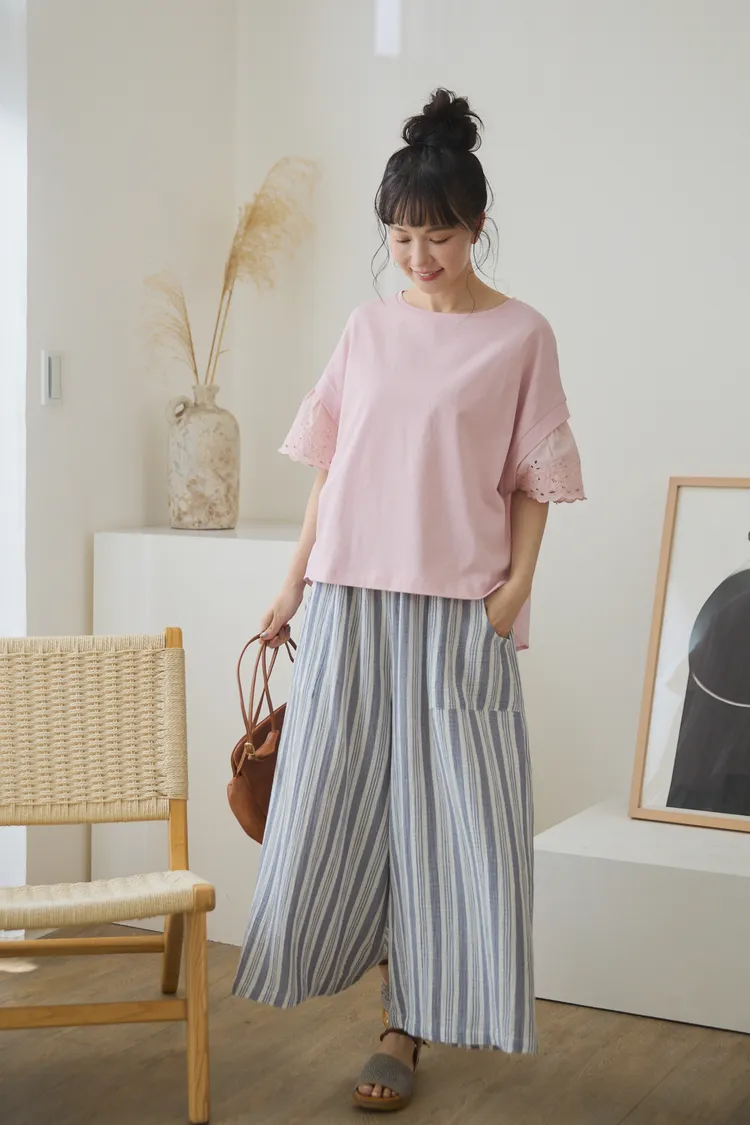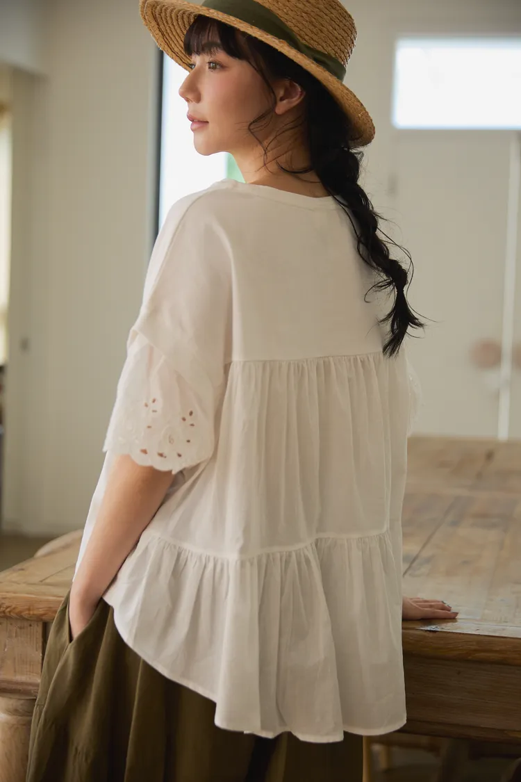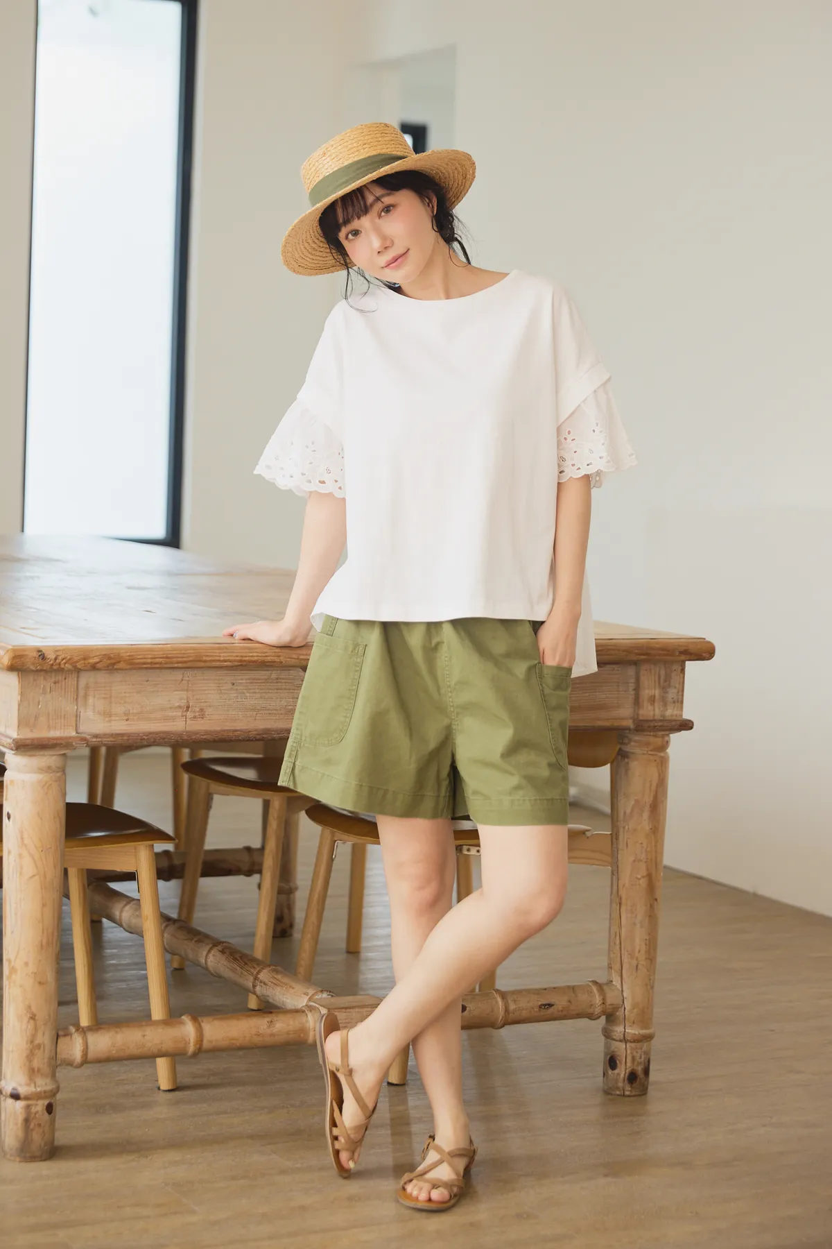 拼接棉質鏤空蕾絲,兼具透氣與挺度。切得剛剛好,可以修飾手臂線條,不會垮也不會勒。版型貼心=誰穿都修飾