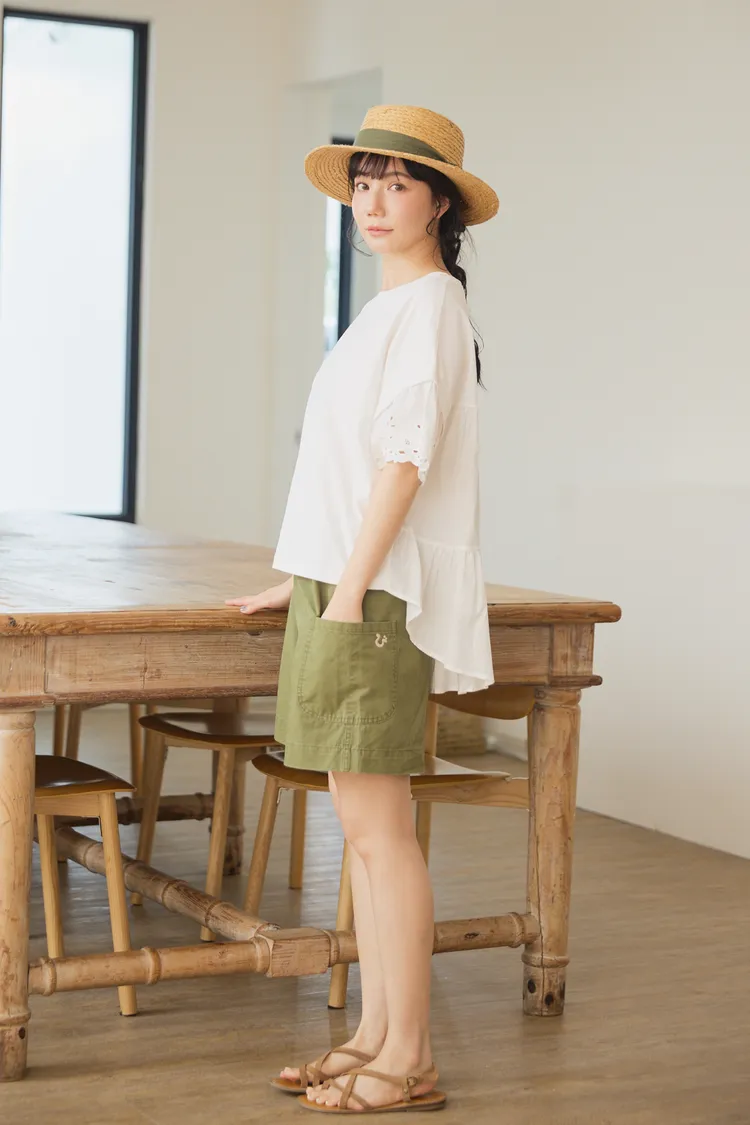 40S/2 雙股棉布底,布重約 200g。摸起來緊實有挺度,穿上有「衣服自帶空氣感」。不會薄到一抬手就透光,也不會塌成舊睡衣;淺色也能安心穿。背後拼接(視覺與減齡)