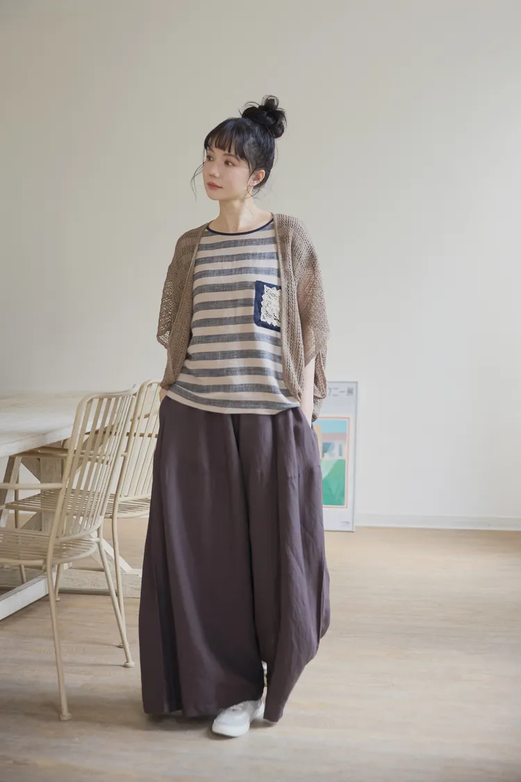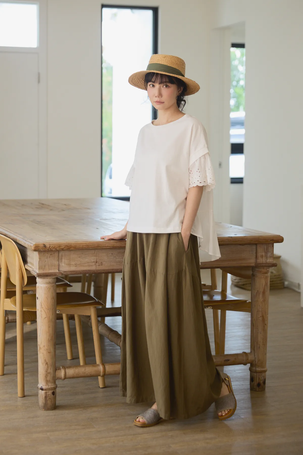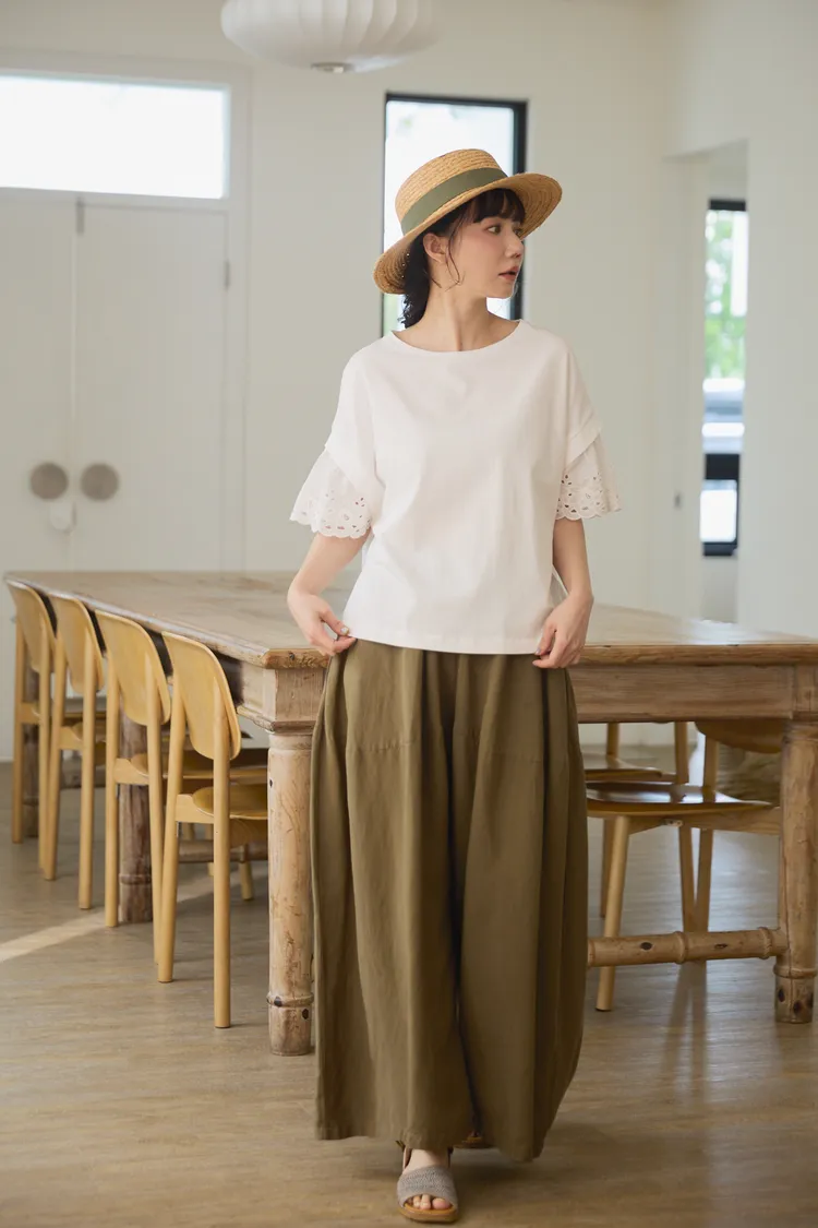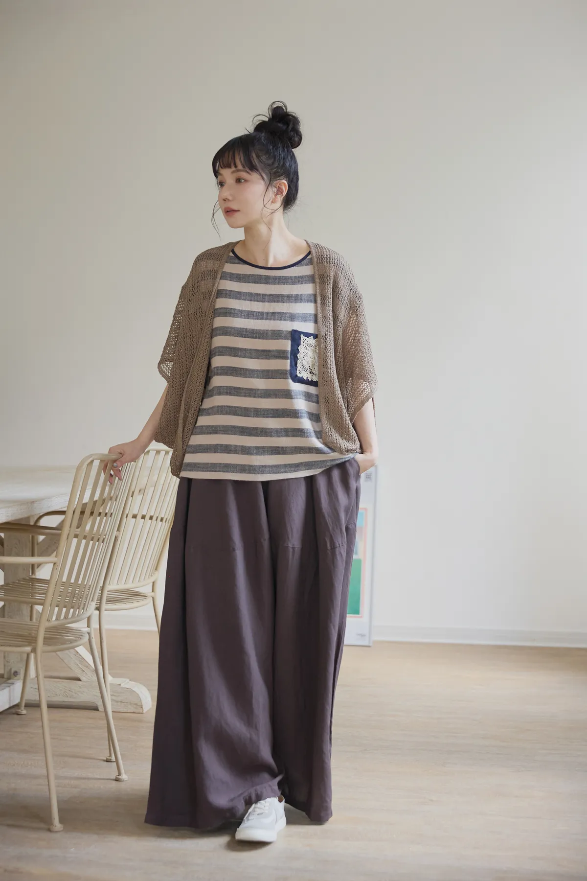 布料是關鍵。它由 55% 麻、45% 嫘縈混紡組成:麻給了褲子必要的挺度與自然涼感,嫘縈則帶來滑順與垂墜,使整條褲子「有骨架但不硬」,摸起來有麻的透氣感卻完全不刺皮。這種組合讓褲子既能保持線條感,又有舒服的貼膚觸感——你可以從早上一路穿到晚上,從捷運到公司、從午休到接孩子回家,幾乎忘記自己穿著褲子。