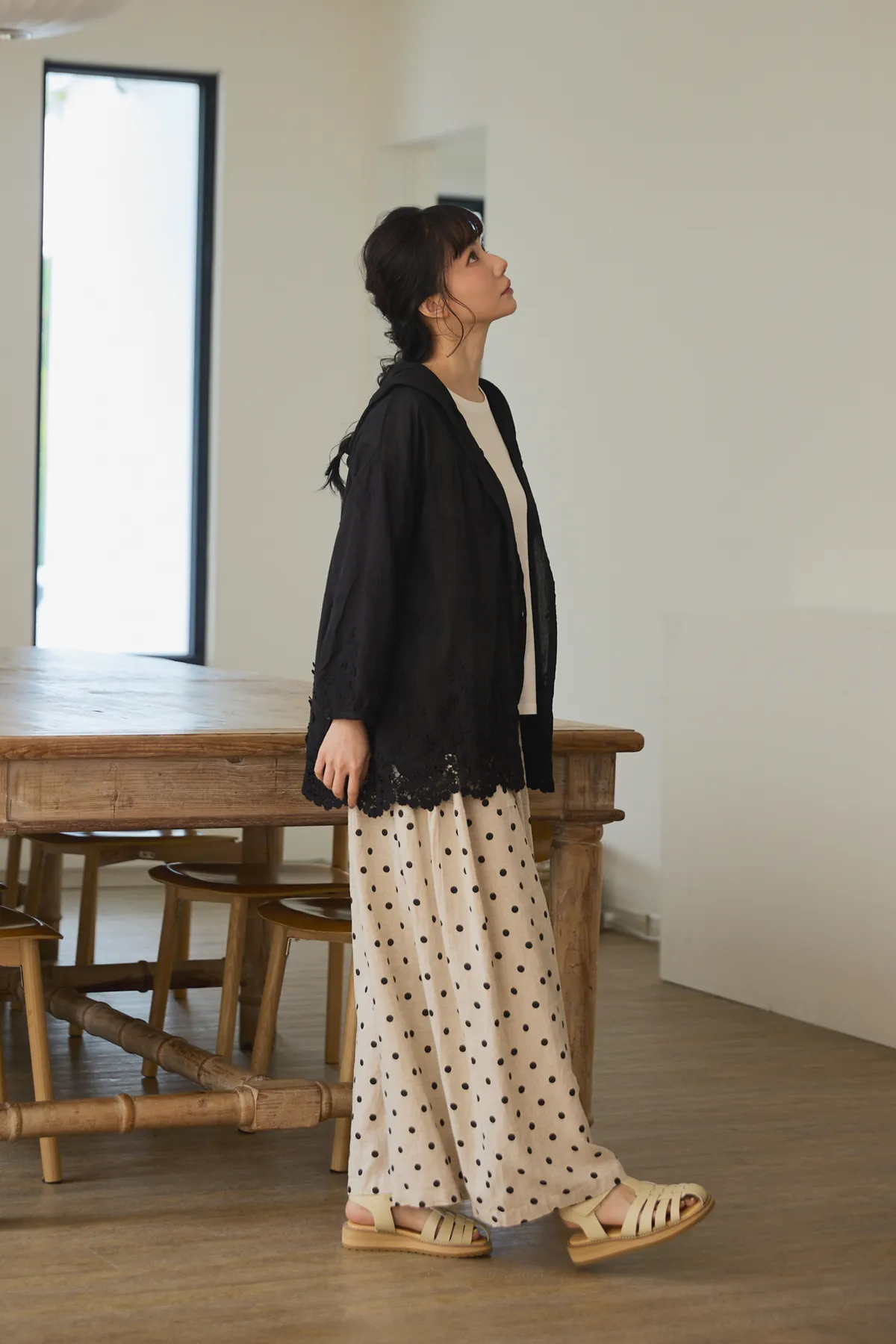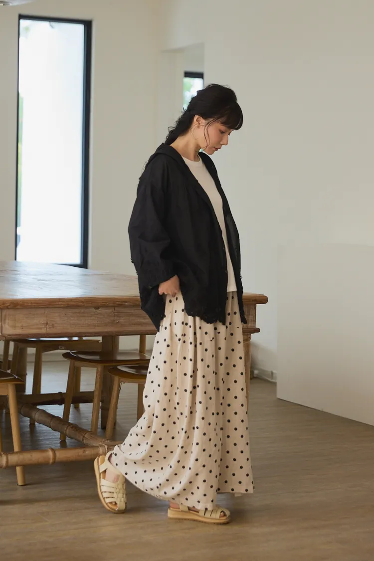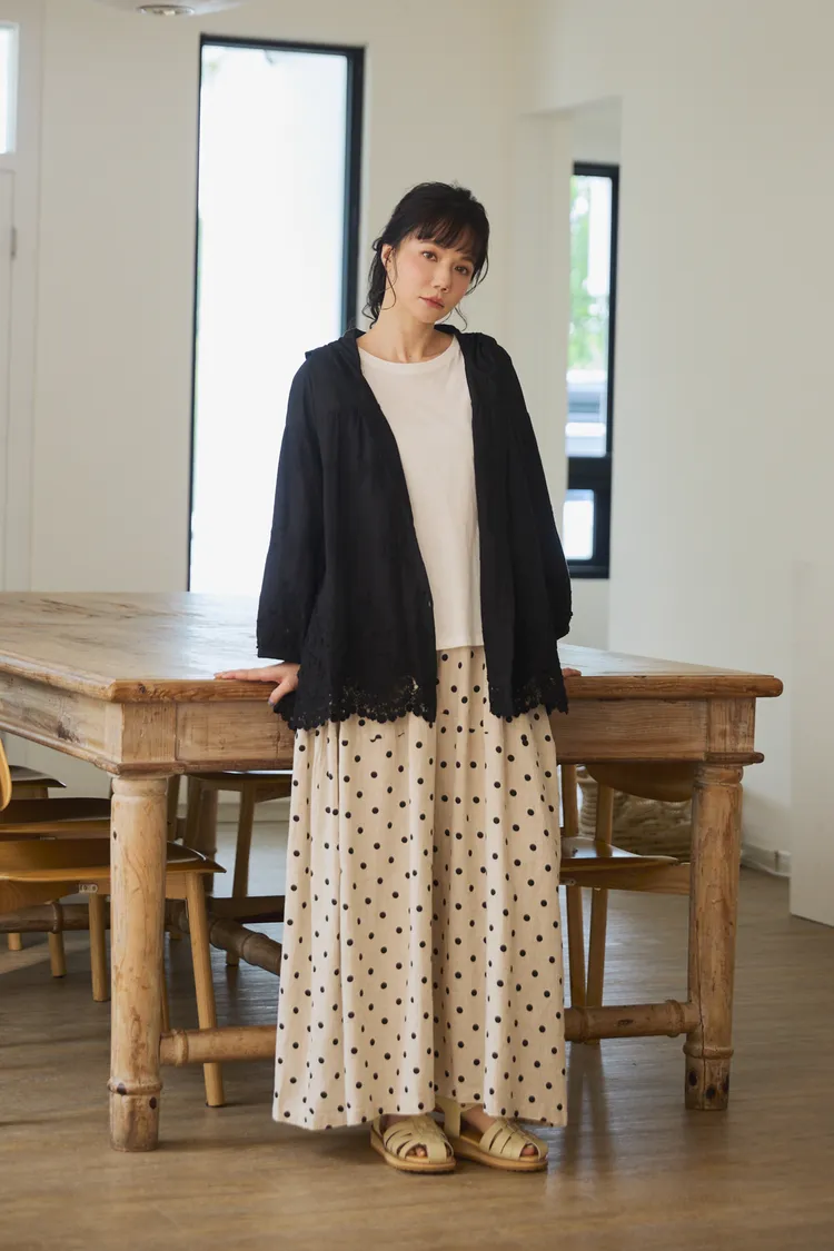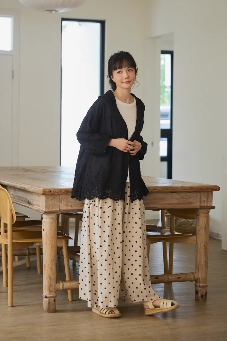 最讓人安心的是腰圍處理——整圈大範圍的鬆緊帶設計,吃火鍋、蹲下綁鞋帶、彎腰搬東西,都不會被勒出痕。這一點對於有小腹或常水腫的人特別友好:腰頭不往下壓,還能幫你藏一點起伏,讓活動自如同時保持體面。